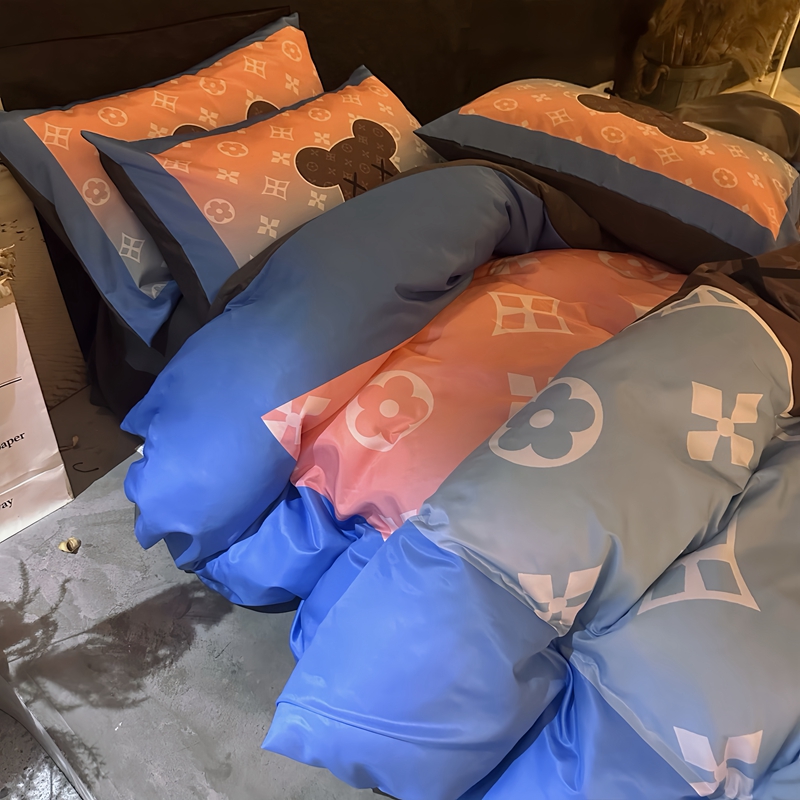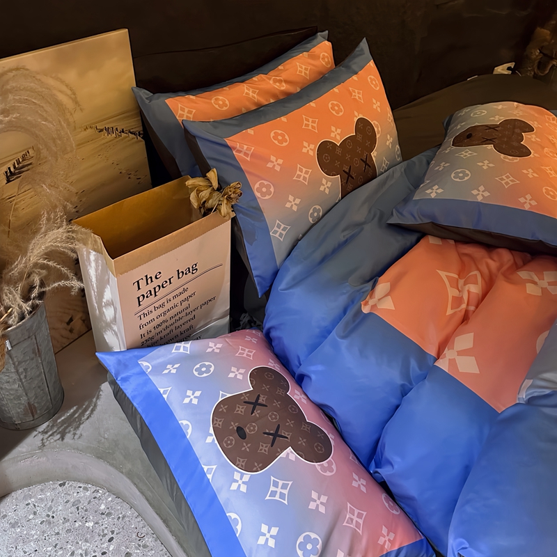 丽斐纺织 2024新款双面进口冰丝数码印花四件套水洗真丝四件套 冰丝寻彩熊