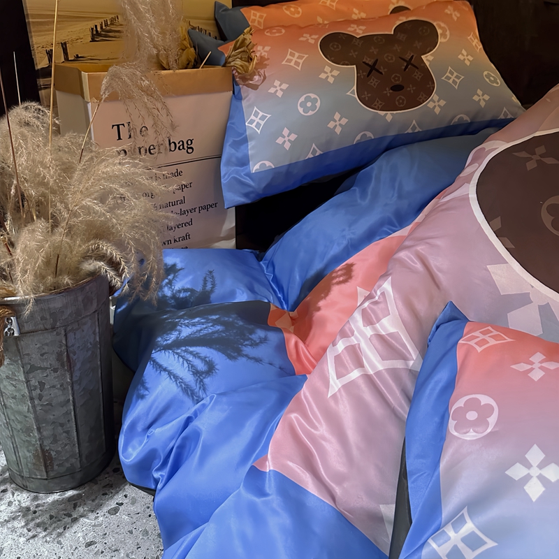 商品名称:丽斐纺织 2024新款双面进口冰丝数码印花四件套水洗真丝四件套 冰丝寻彩熊