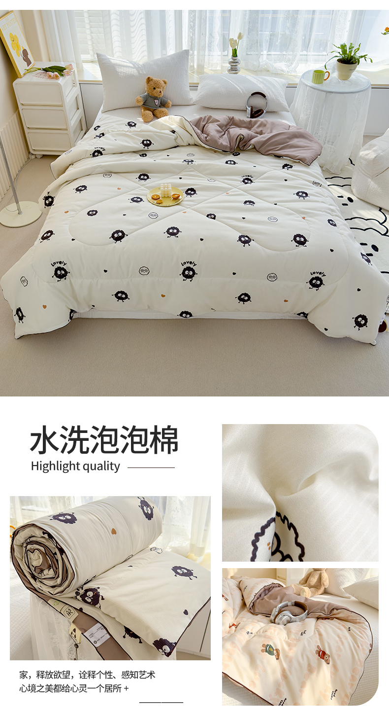 商品名称:花言狐语 2025新款A类水洗泡泡棉大豆纤维夏凉被 可爱煤球