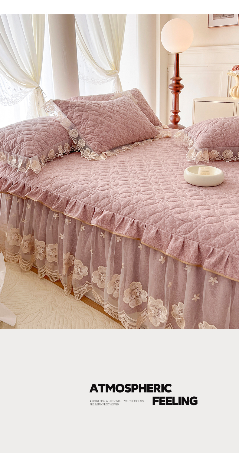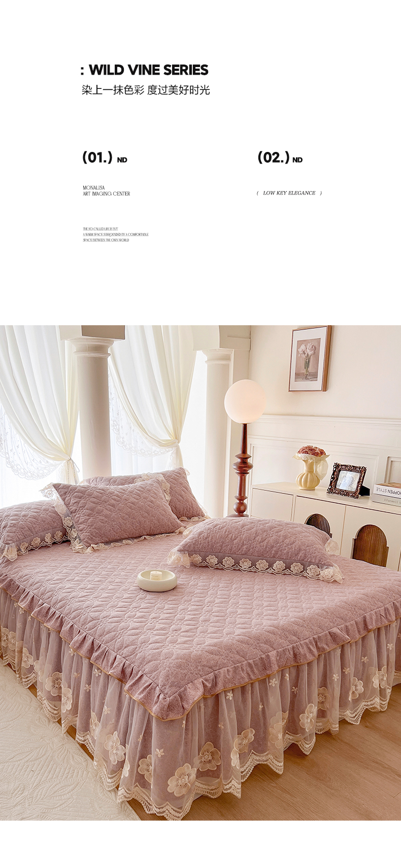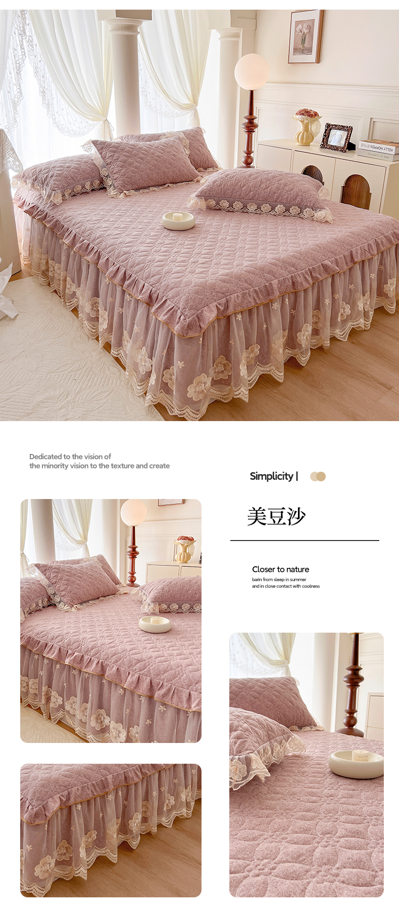 (总)网红馆(ck家纺) 2025新款牛奶绒花边床盖四件套-甜蜜蜜,甜蜜蜜-粉,甜蜜蜜-咖,甜蜜蜜-绿,甜蜜蜜-米,甜蜜蜜-紫