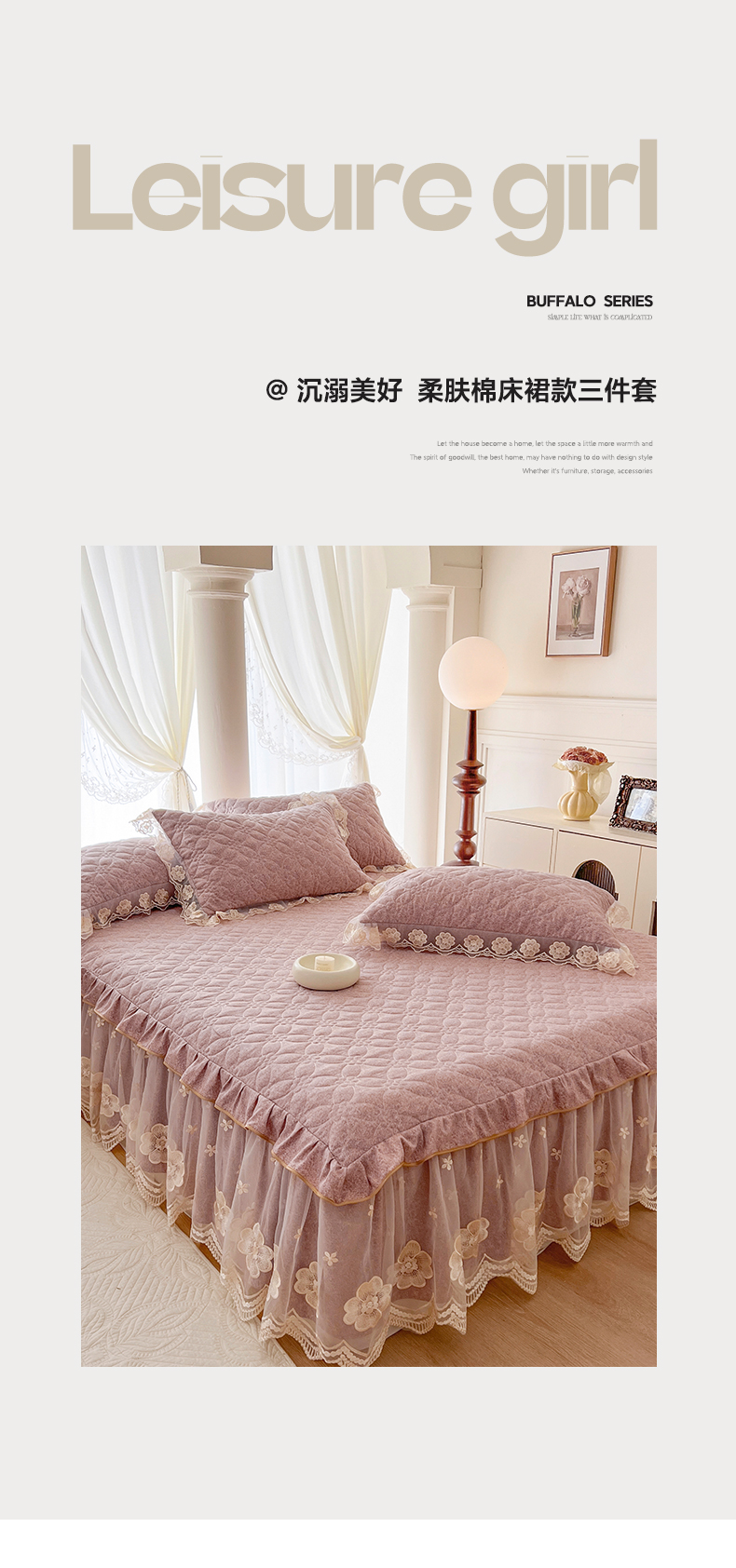 (总)网红馆(ck家纺) 2025新款色织提花牛奶绒床裙四件套-洛丽塔系列,洛丽塔-豆沙,洛丽塔-蓝色,洛丽塔-米色