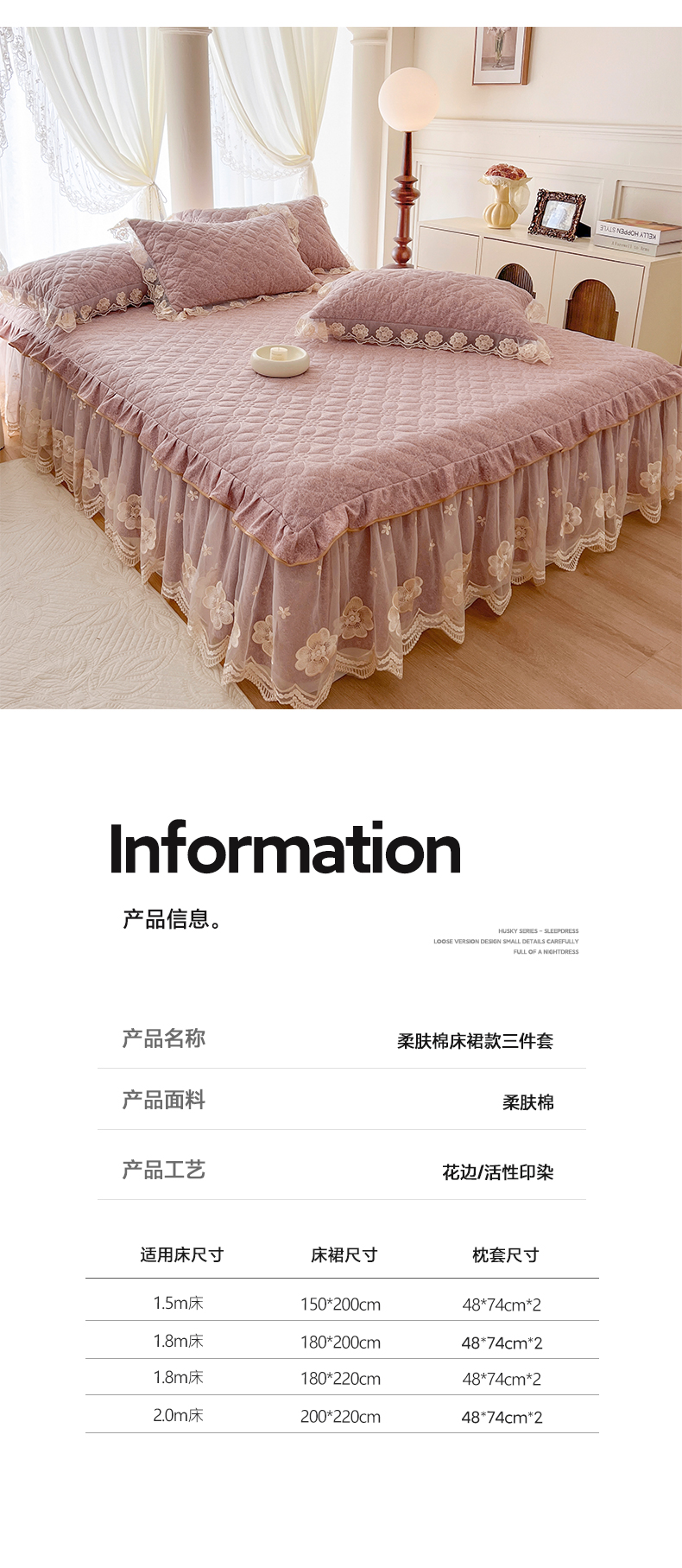 商品名称:网红馆 2025新款柔肤棉四件套床裙花边款艾丽莎系列 美豆沙
