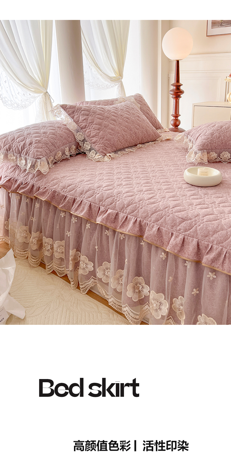 (总)网红馆(ck家纺) 2025新款亲肤舒适牛奶绒蕾丝边床裙四件套-秘密花园,秘密花园-粉色,秘密花园-卡其,秘密花园-米色,秘密花园-紫色