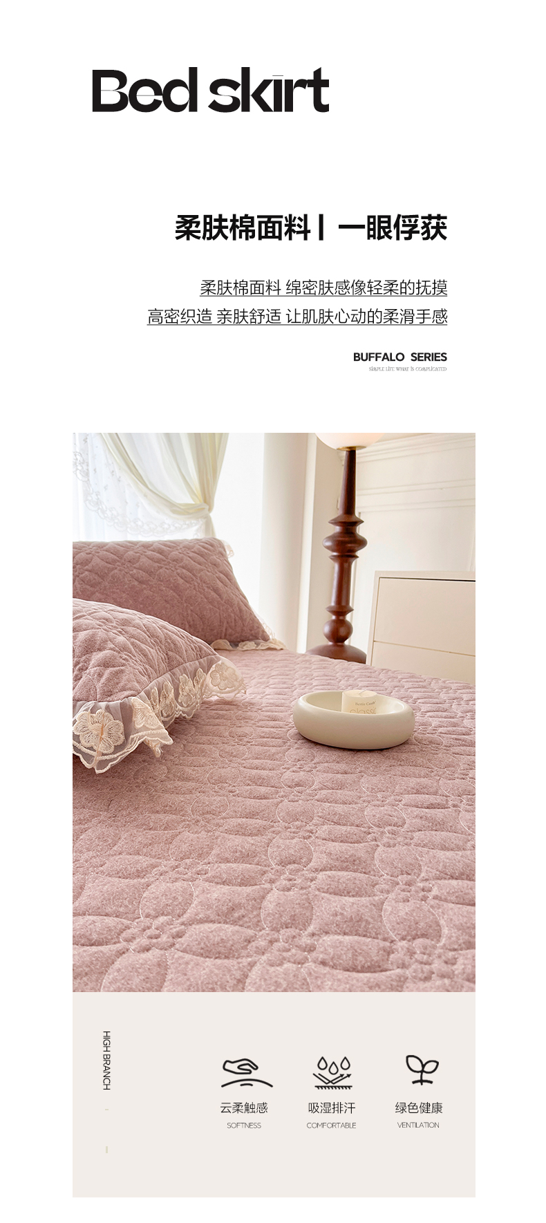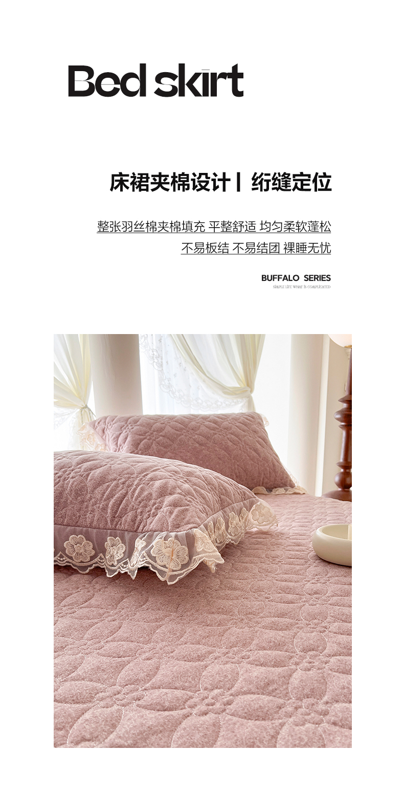 (总)网红馆(ck家纺) 2025新款高克重牛奶绒单床裙 床裙单件卡妮娜系列,卡妮娜-粉色,卡妮娜-灰色,卡妮娜-卡其,卡妮娜-绿色,卡妮娜-米色