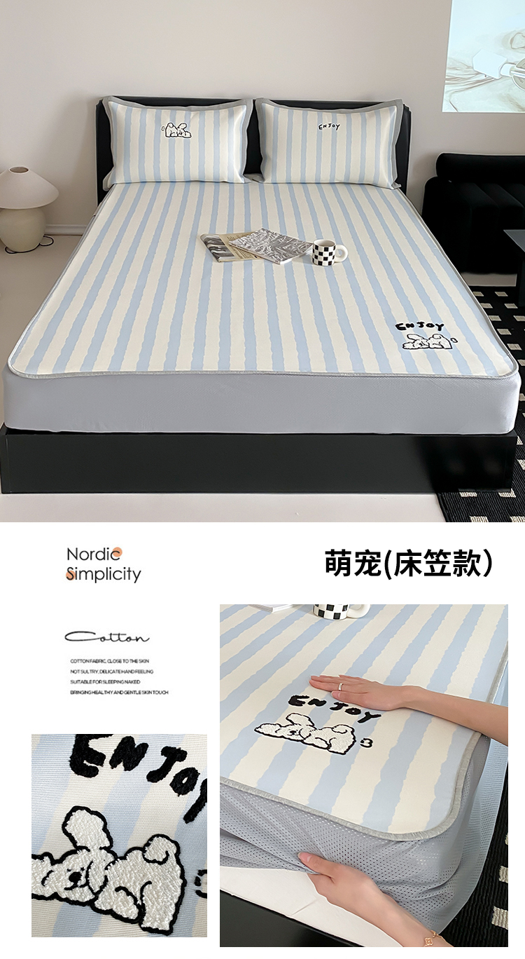 商品名称:三味舒屋2025新款凉感抗菌防螨毛巾绣印花冰丝养生席(新升级7A抗菌)床席款 萌宠