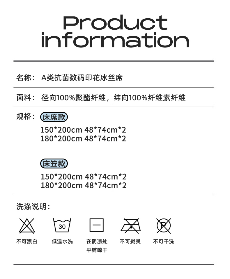 (总)三味舒屋 2025新款 凉感抗菌防螨印花冰丝养生席(新升级7A抗菌),花非花 床席,花非花 床笠,雾非雾 床席,雾非雾 床笠