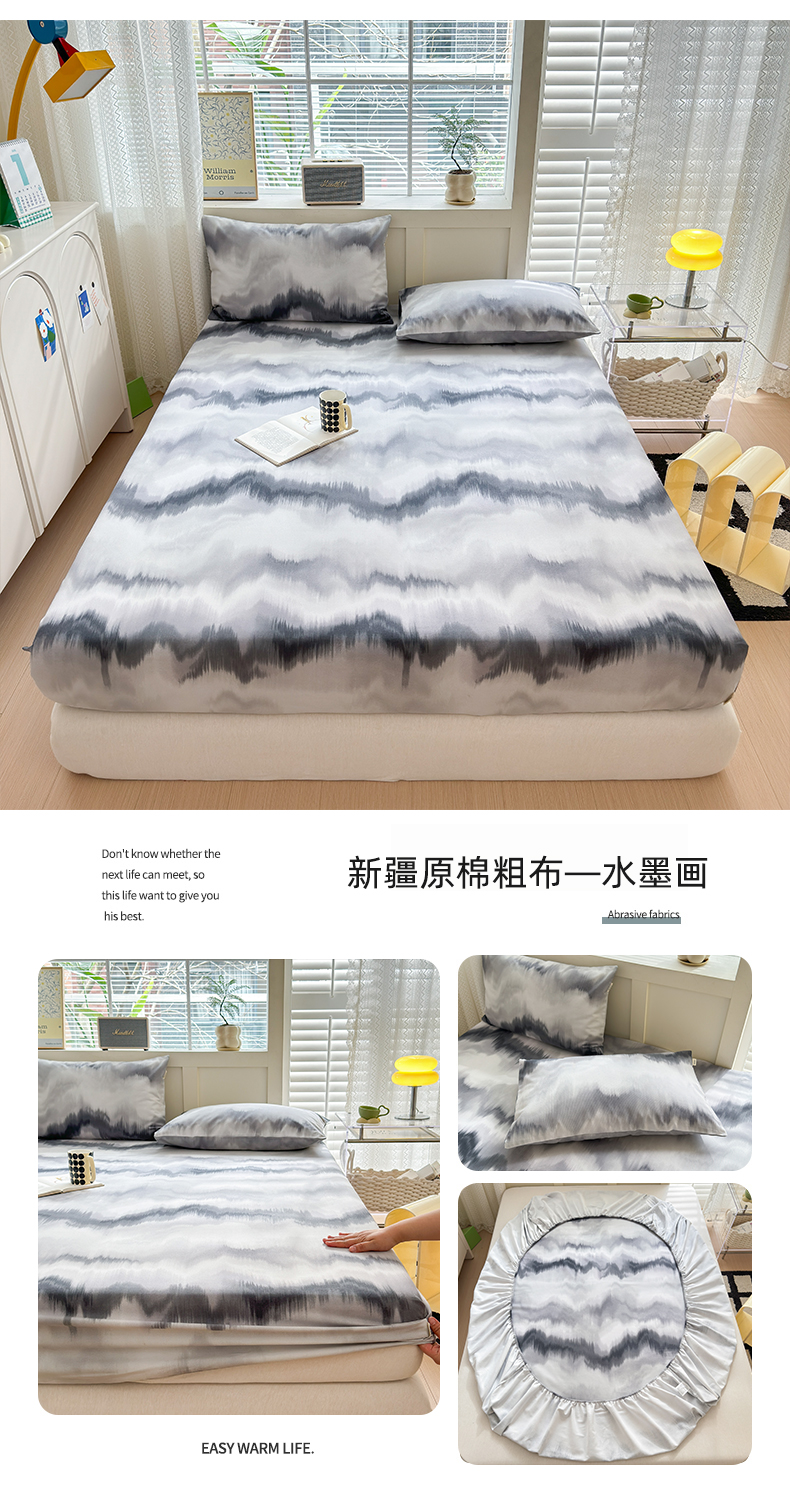 当前位置: 91家纺网 > 商品网购 > 床品套件 > 三件套 > 吉象家纺 2024新款老粗布三件套-床笠款 水墨画