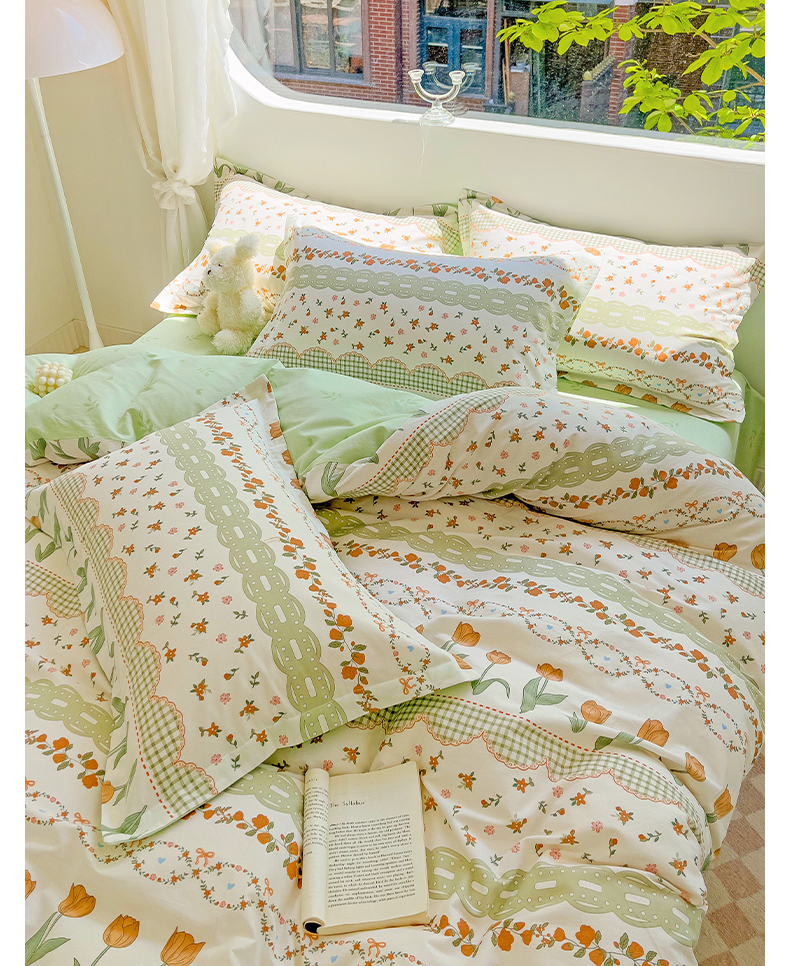 暖芯优选 204新款直播爆款全棉-ins印花系列四件套纯棉三件套床单床笠 甜香花