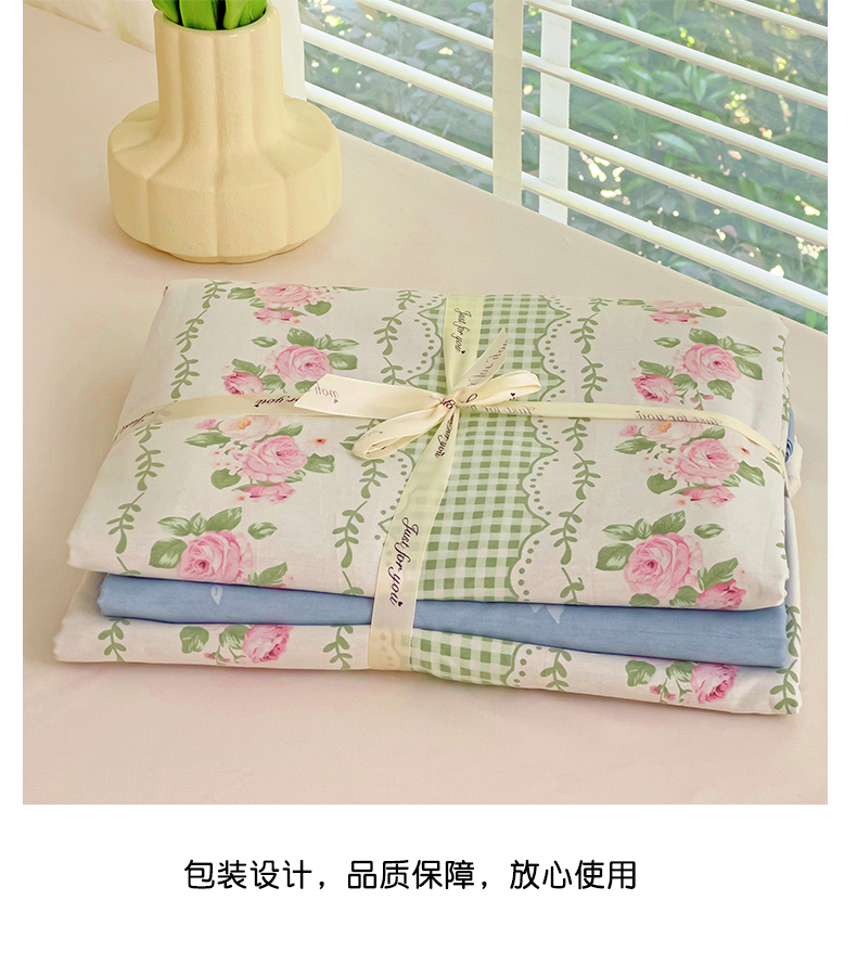 商品名称:暖芯优选 204新款直播爆款全棉-ins印花系列四件套纯棉三件套床单床笠 蔷薇花语