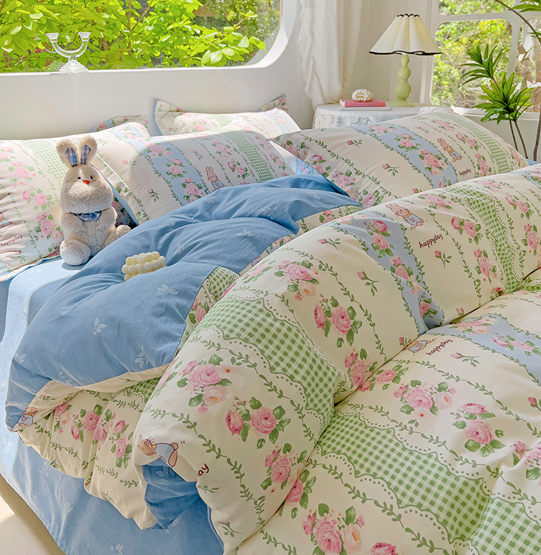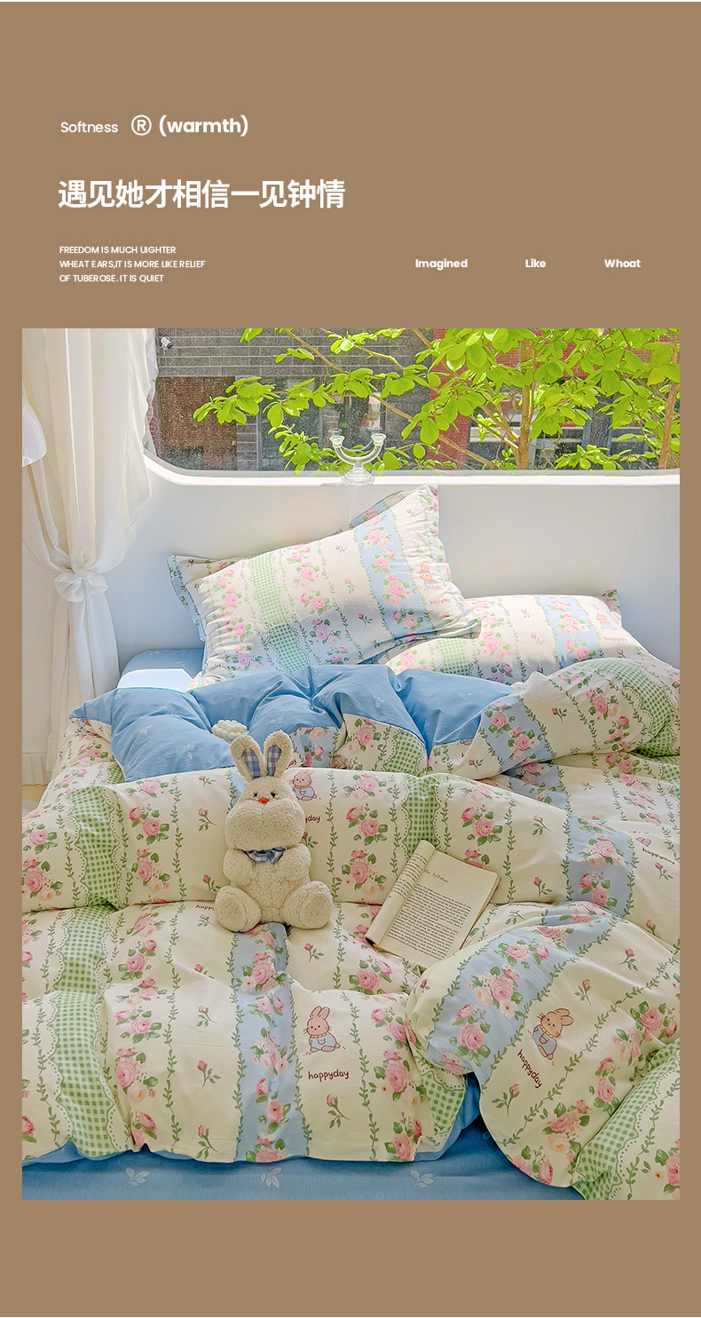 (总)暖芯优选 2023直播新款法式风双层纱棉麻水洗棉四件套,朝颜,春日花园兔,花季,花开半夏,简约豹纹,浪漫比克,浪漫梦幻,玫瑰园,枇杷树,清欢-蓝,清欢-绿,小米果,花季-绿,花园兔,兰玫瑰,曼塔玫瑰,小熊院长,微微安,曼芮粉,曲意风华,繁花似锦