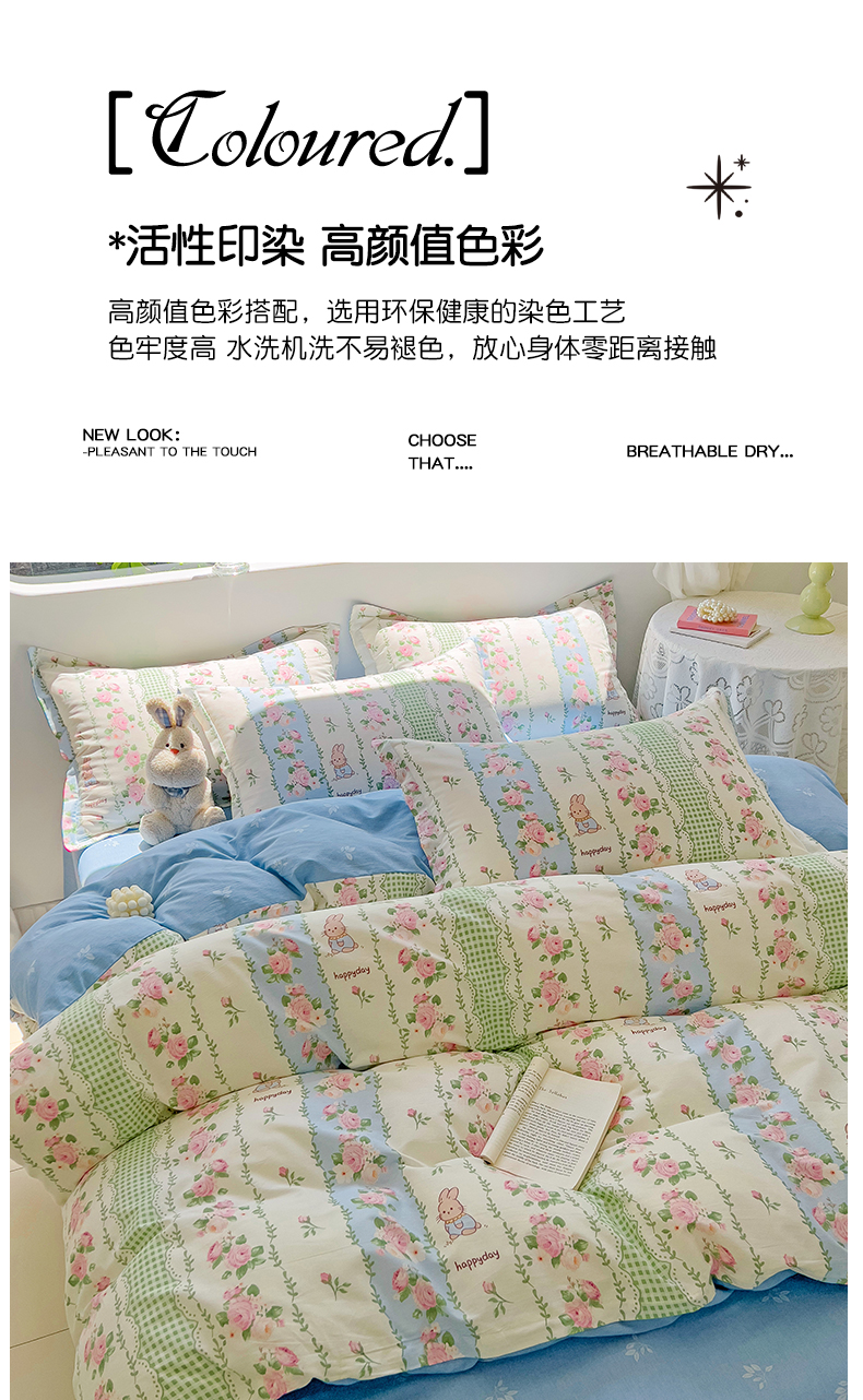 暖芯优选 204新款直播爆款全棉-ins印花系列四件套纯棉三件套床单床笠 蔷薇花语