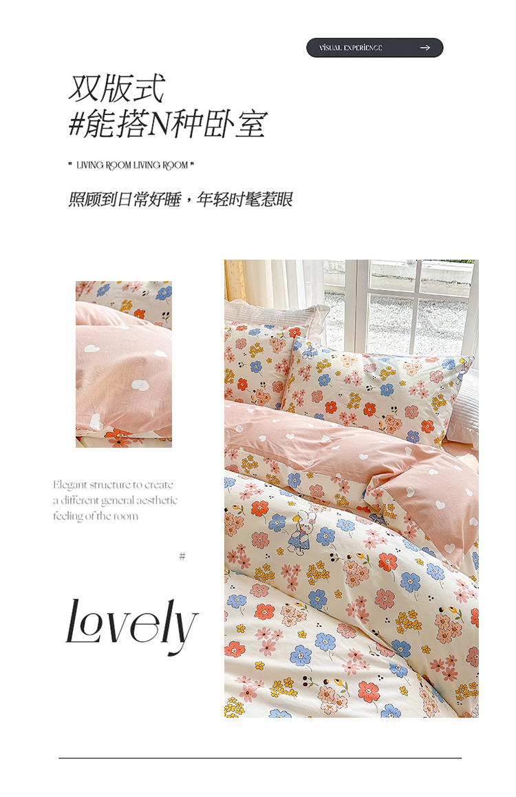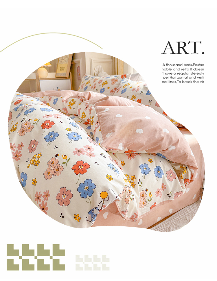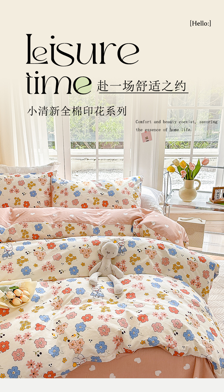 当前位置: 91家纺网 > 商品网购 > 床品套件 > 四件套 > 全棉普通四件套 > 清雅福 2024新款全棉13372小清新四件套和单品系列第四季 花仙兔