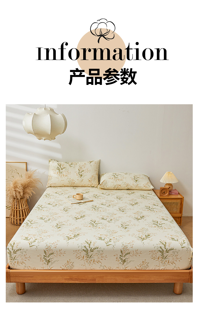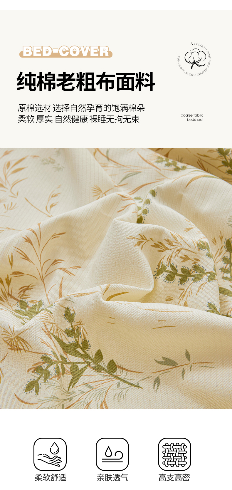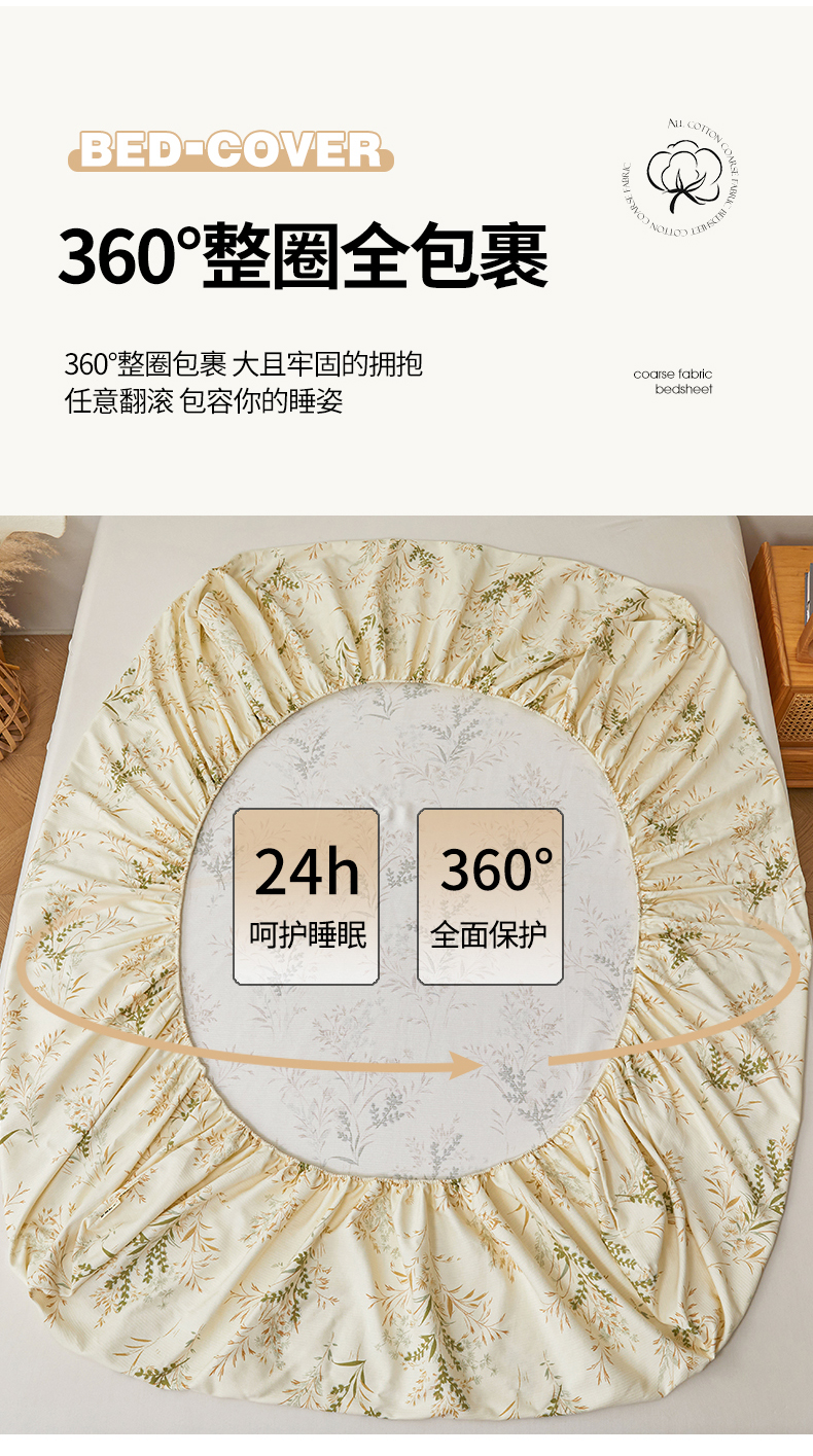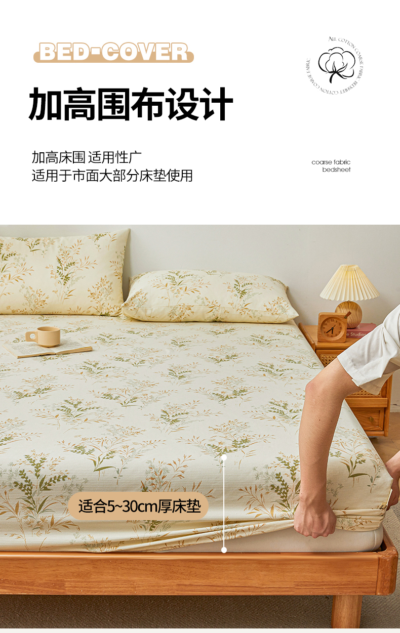 商品名称:居眠 2024新款A类全棉老粗布印花单品床笠 绿蔓