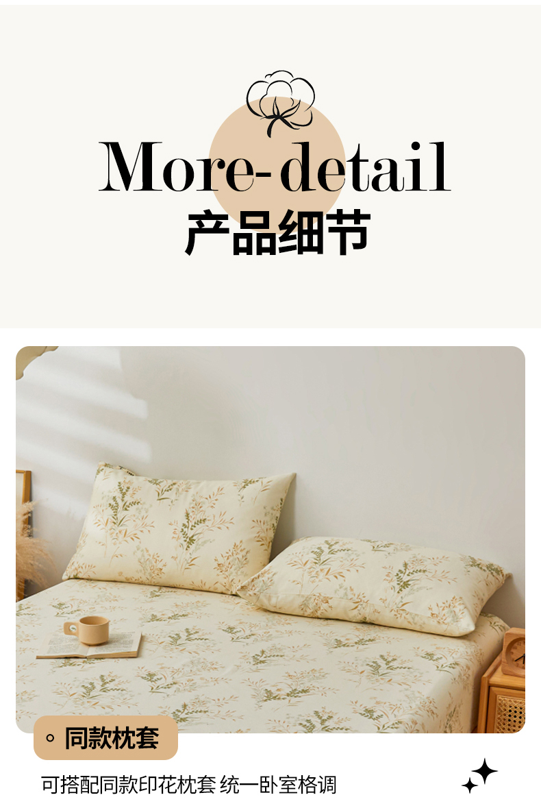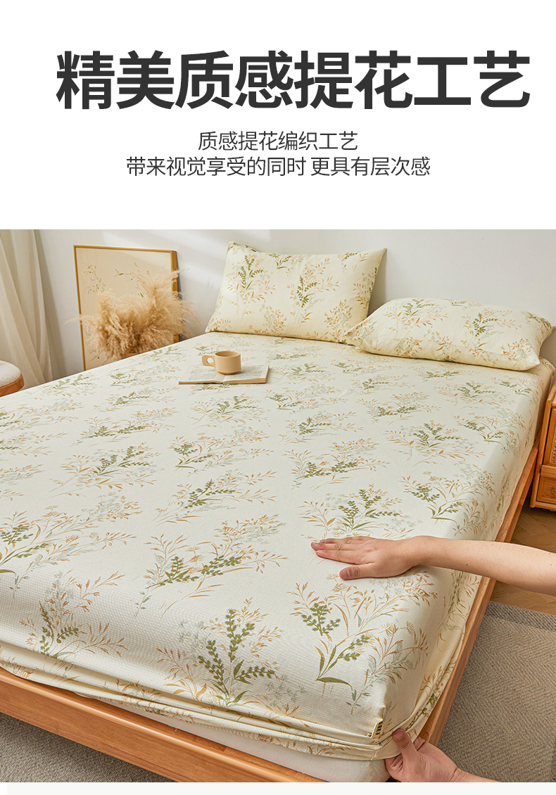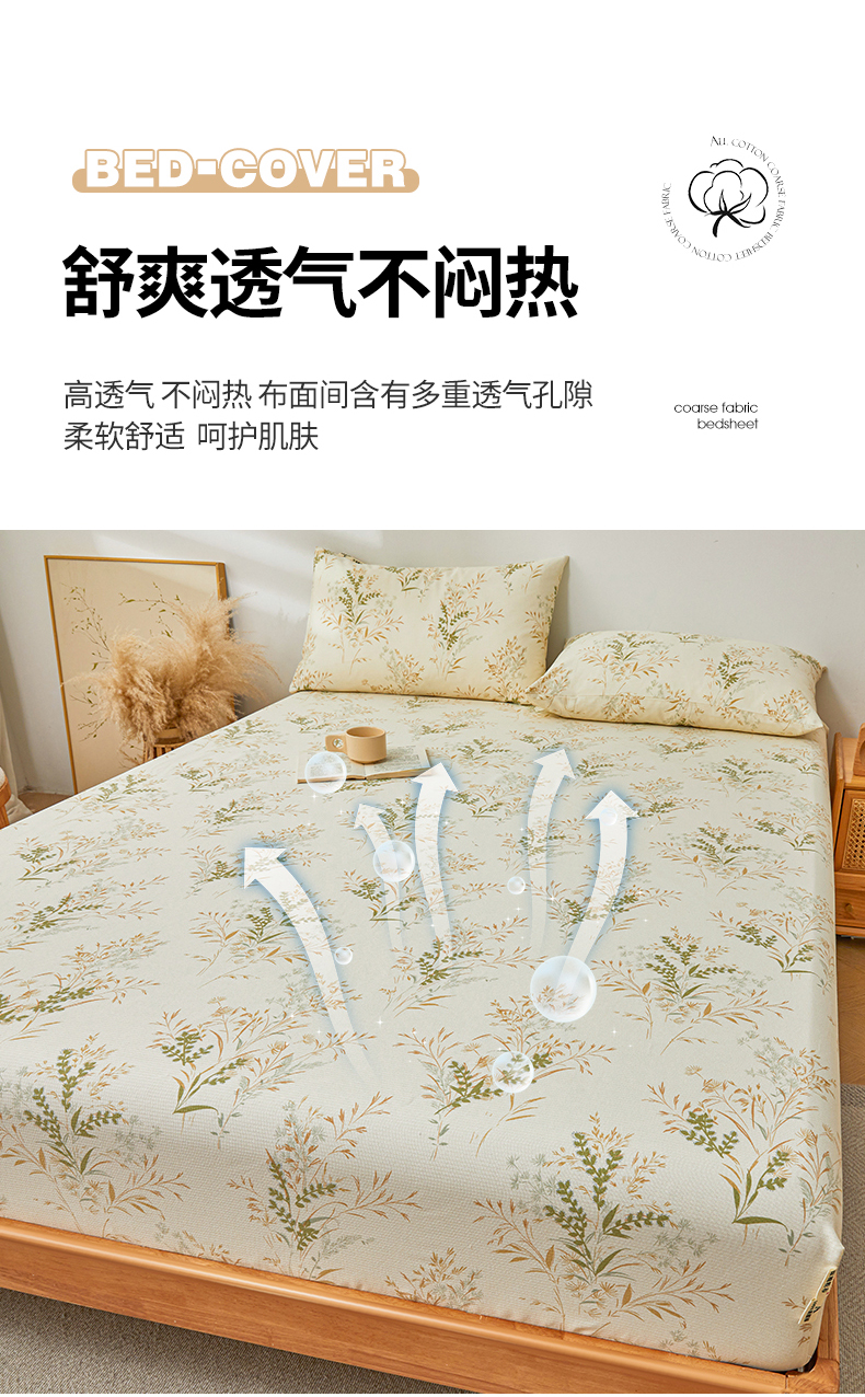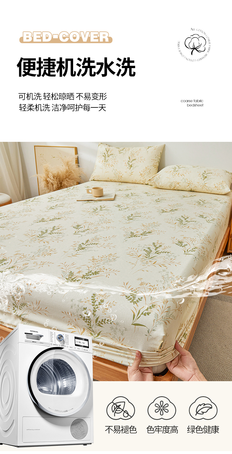 商品名称:居眠 2024新款A类全棉老粗布印花单品床笠 绿蔓