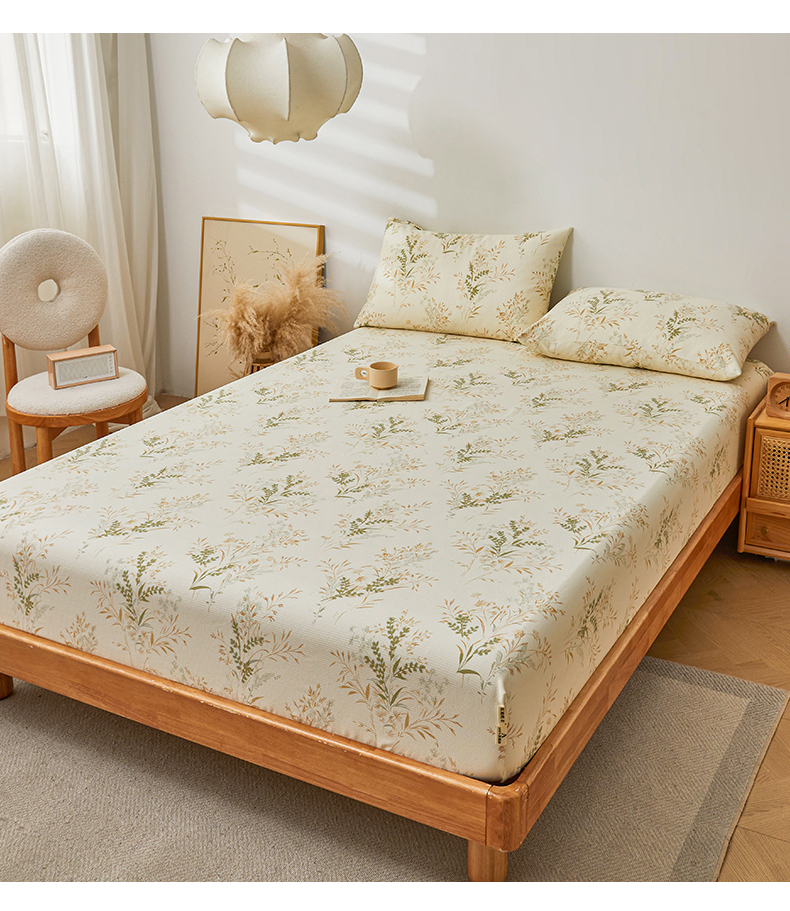 居眠 2024新款A类全棉老粗布印花单品床笠 绿蔓