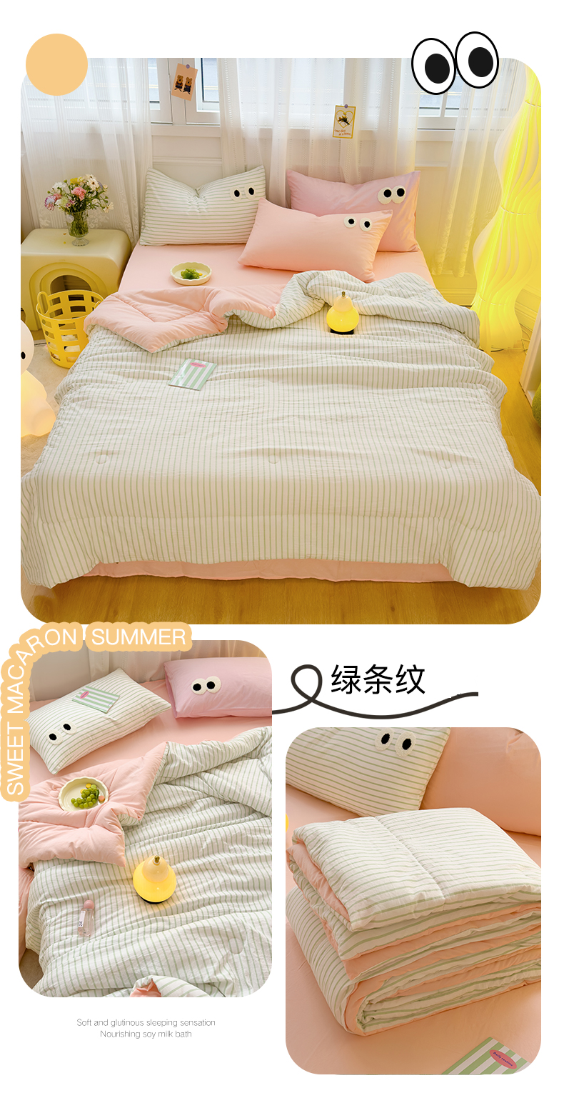 当前位置: 91家纺网 > 商品网购 > 床品套件 > 四件套 > 夏被四件套 > 颜选 2024新款热款大眼睛夏被单品夏被四件套 绿条纹