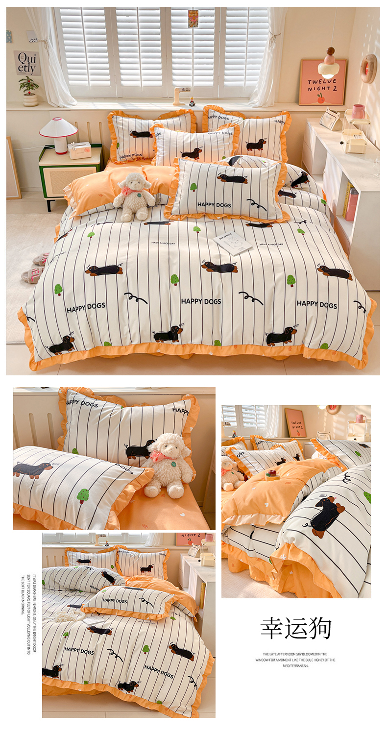 当前位置: 91家纺网 > 商品网购 > 床品套件 > 四件套 > 上尚居 2024直播爆款卡通小清新韩版花边公主风水洗棉磨毛四件套 幸运狗