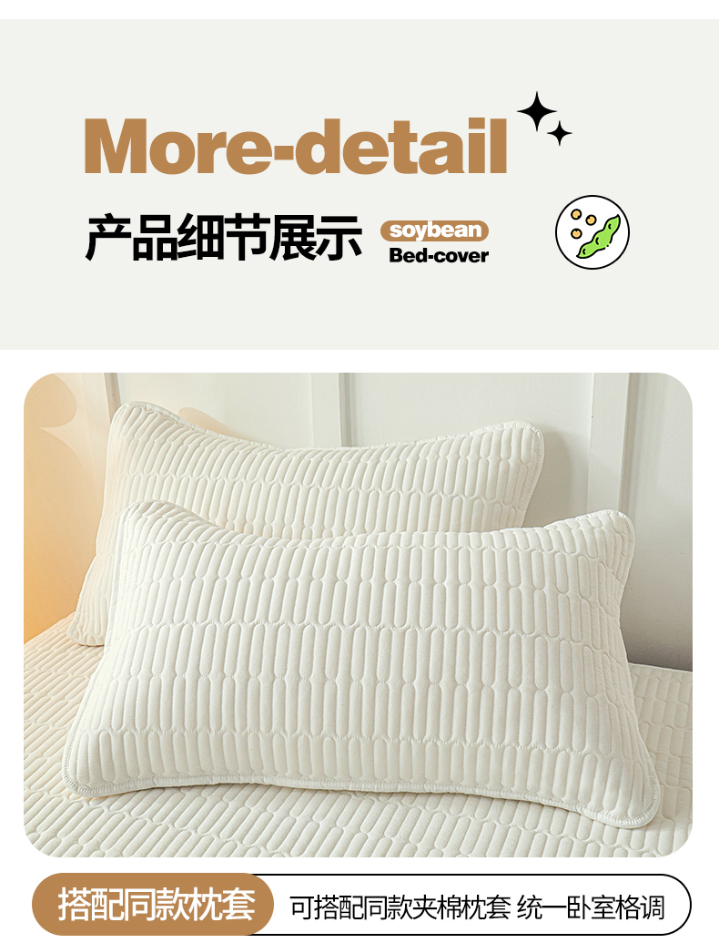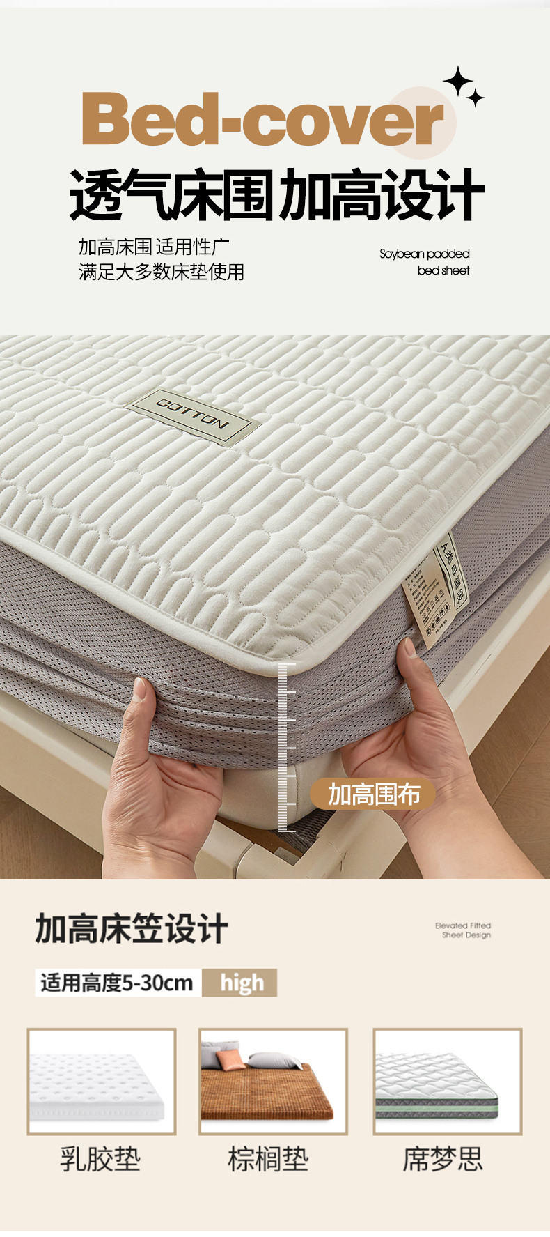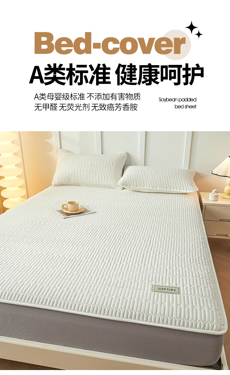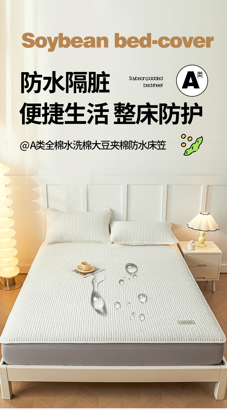 3C 2024新款A类全棉水洗棉大豆夹棉防水床笠-网忆 云朵白