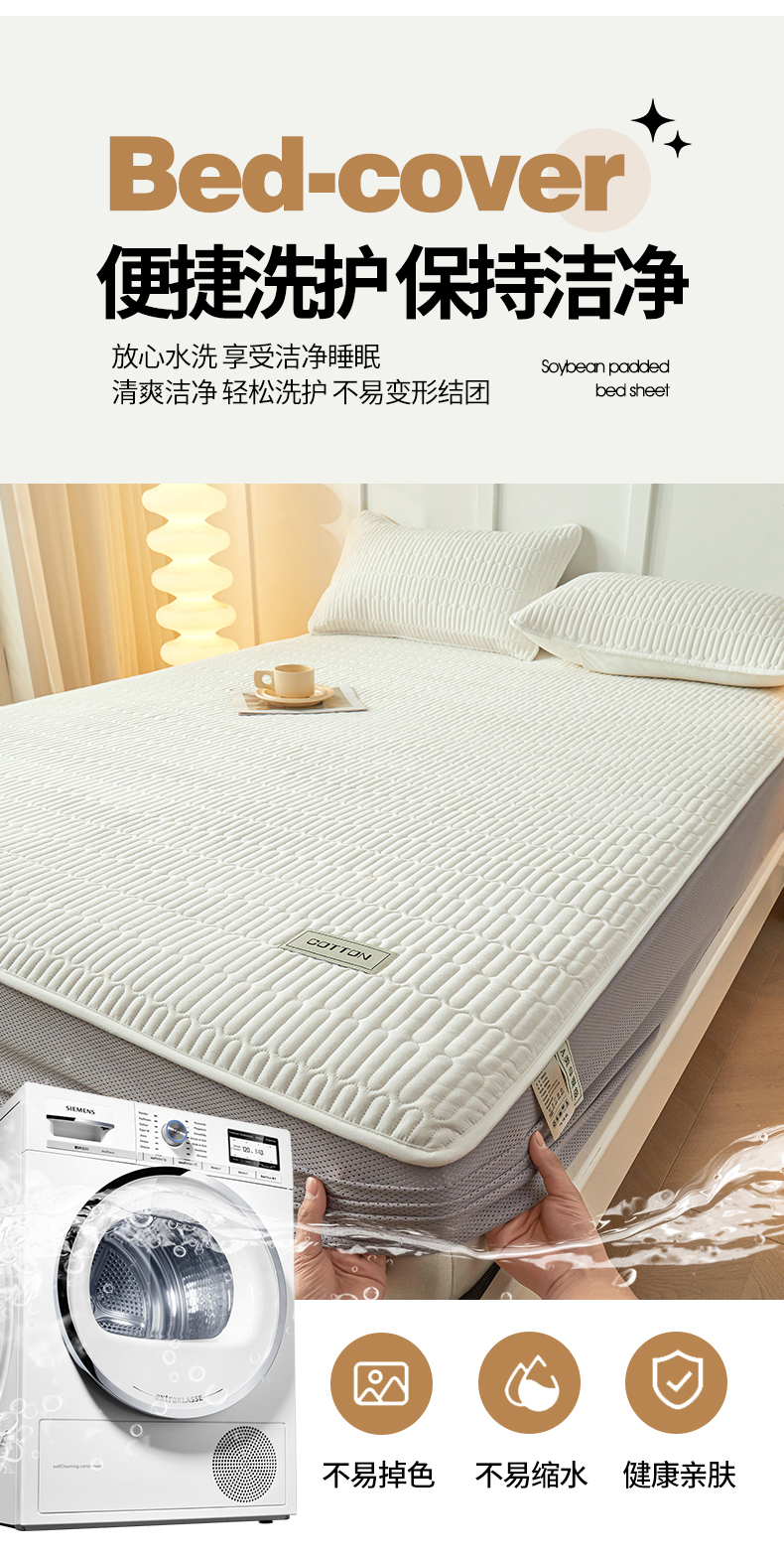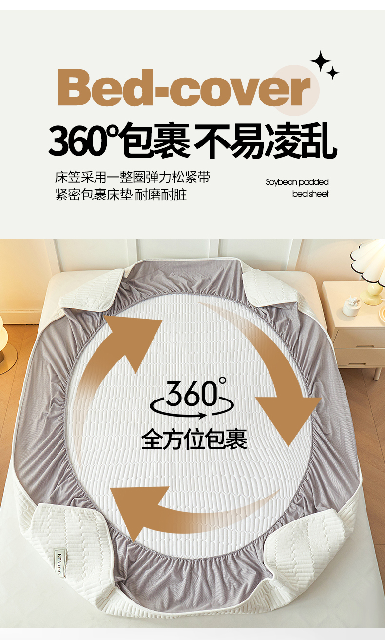 • 91家纺网 家纺一手货源 找家纺 3C 2024新款A类全棉水洗棉大豆夹棉防水床笠-网忆  云朵白