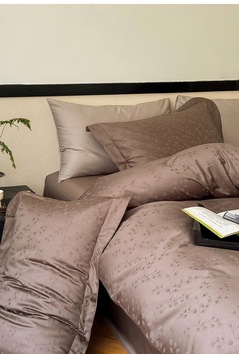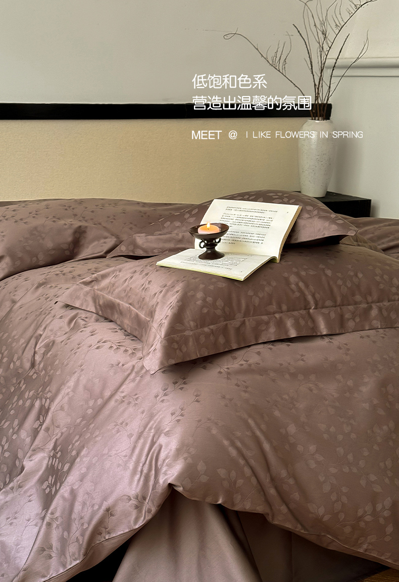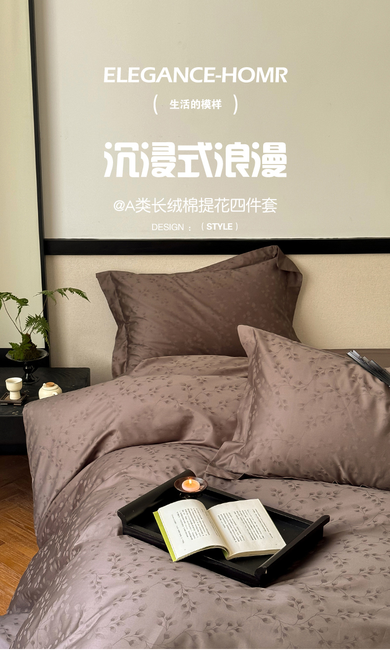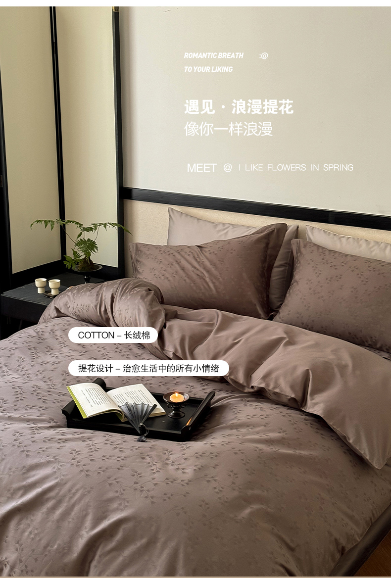 云栖家居 2024全棉提花A类四件套 春意漫漫-木茶棕