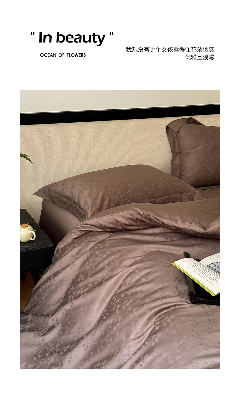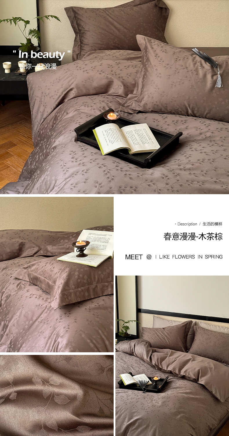 商品名称:云栖家居 2024全棉提花A类四件套 春意漫漫-木茶棕