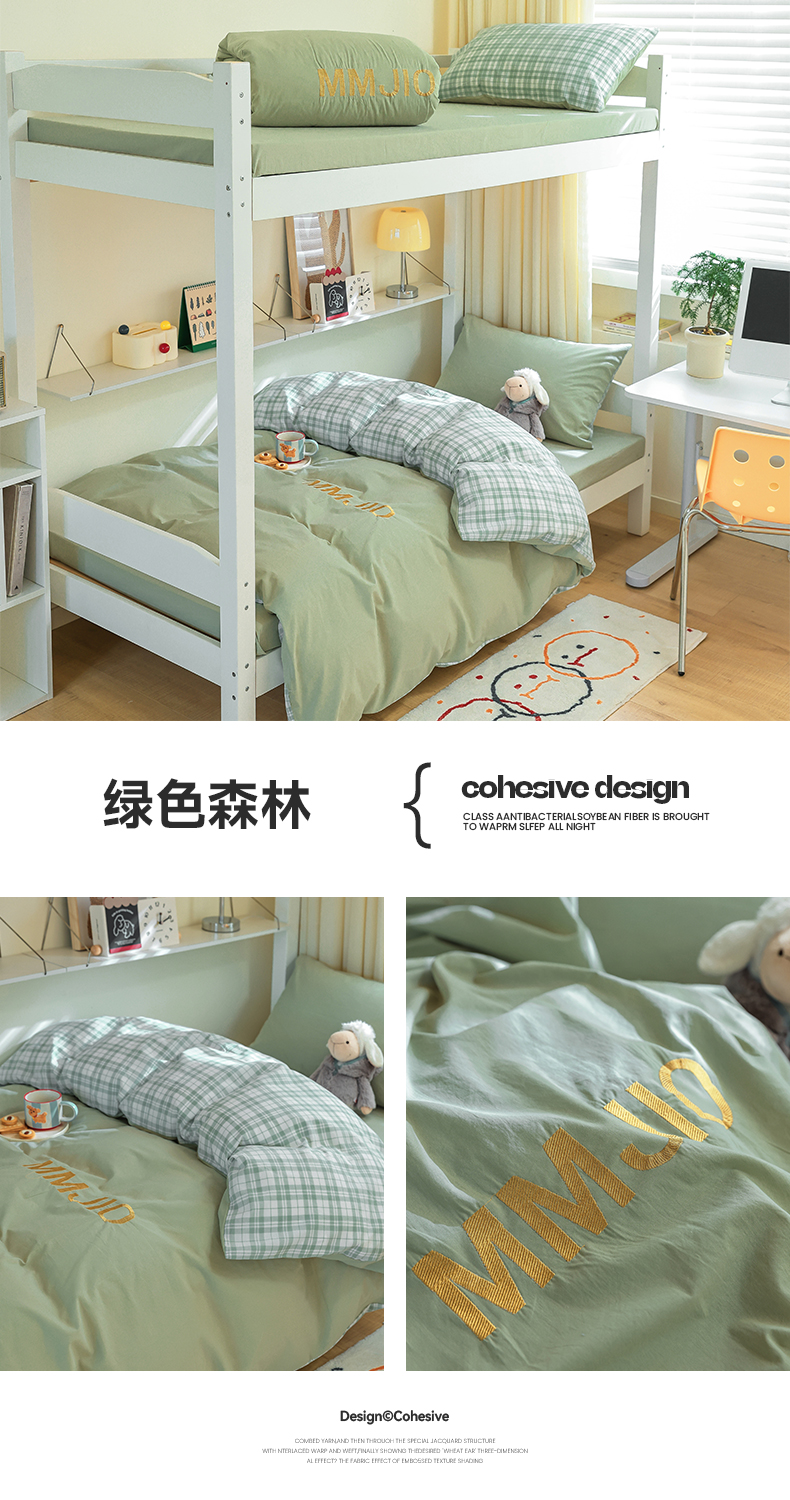 当前位置: 91家纺网 > 商品网购 > 床品套件 > 四件套 > 全棉活性四件套 > 寐眠 2024新款全棉水洗棉刺绣学生三件套四件套宿舍套件 绿色森林