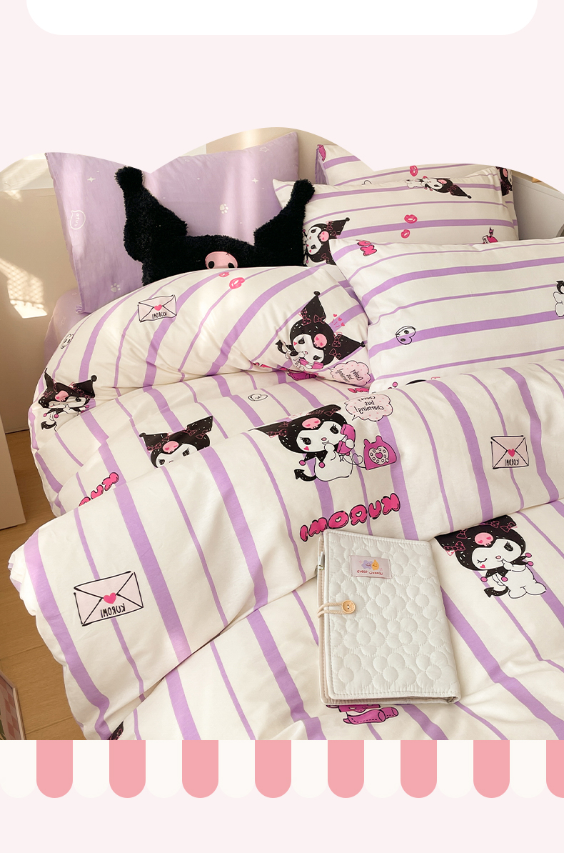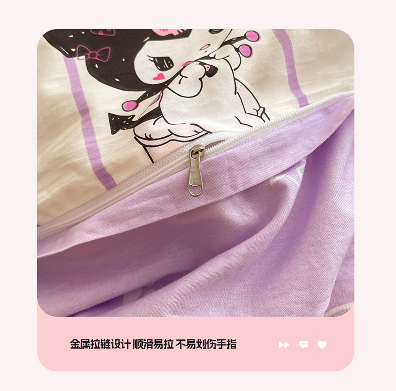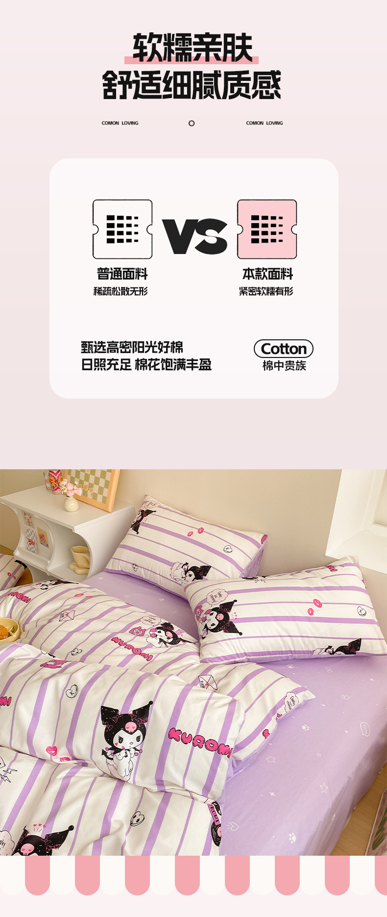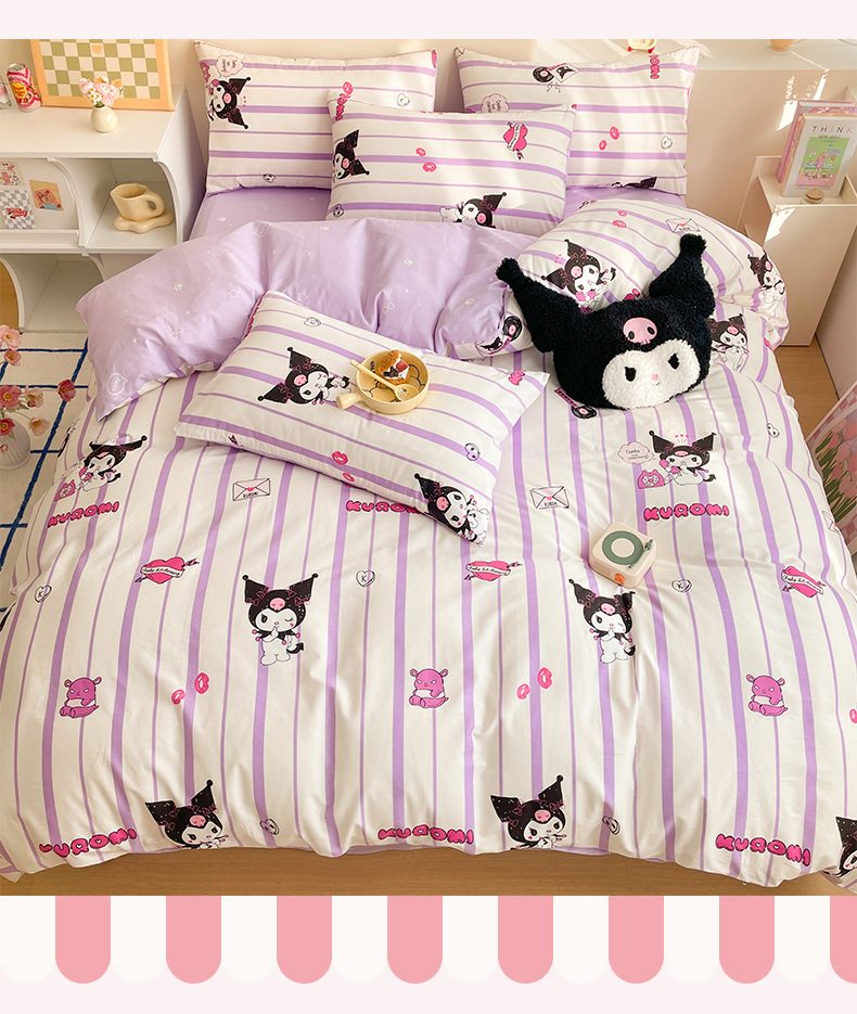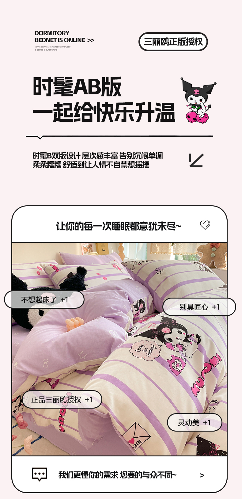 商品名称:雅居纺家纺 2024新款全棉印花13070三丽鸥正版授权四件套 库洛米-紫