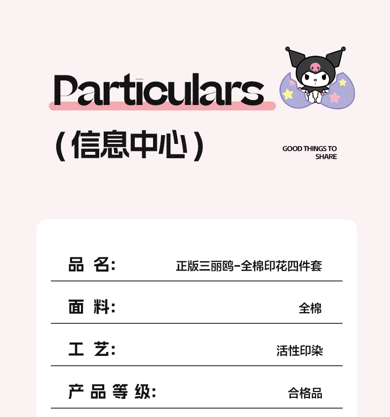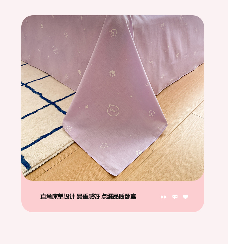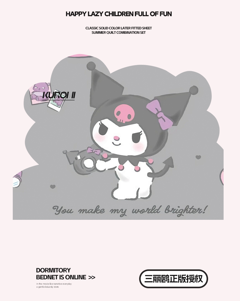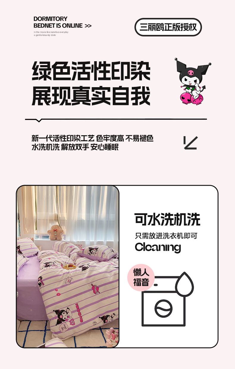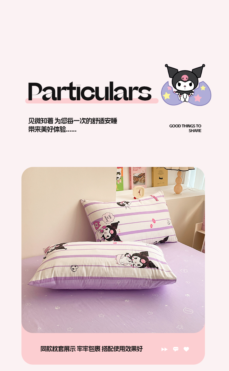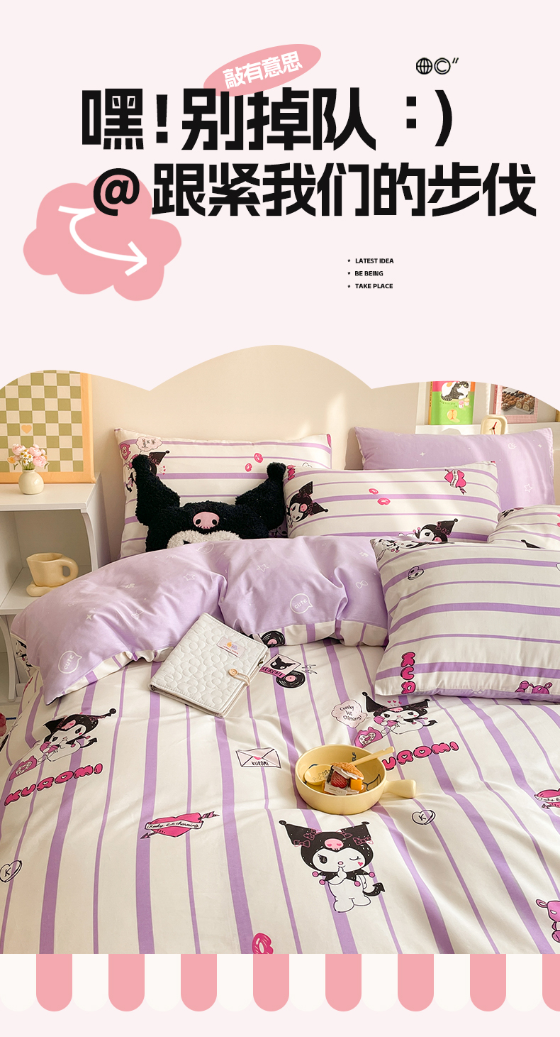 商品名称:雅居纺家纺 2024新款全棉印花13070三丽鸥正版授权四件套 库洛米-紫
