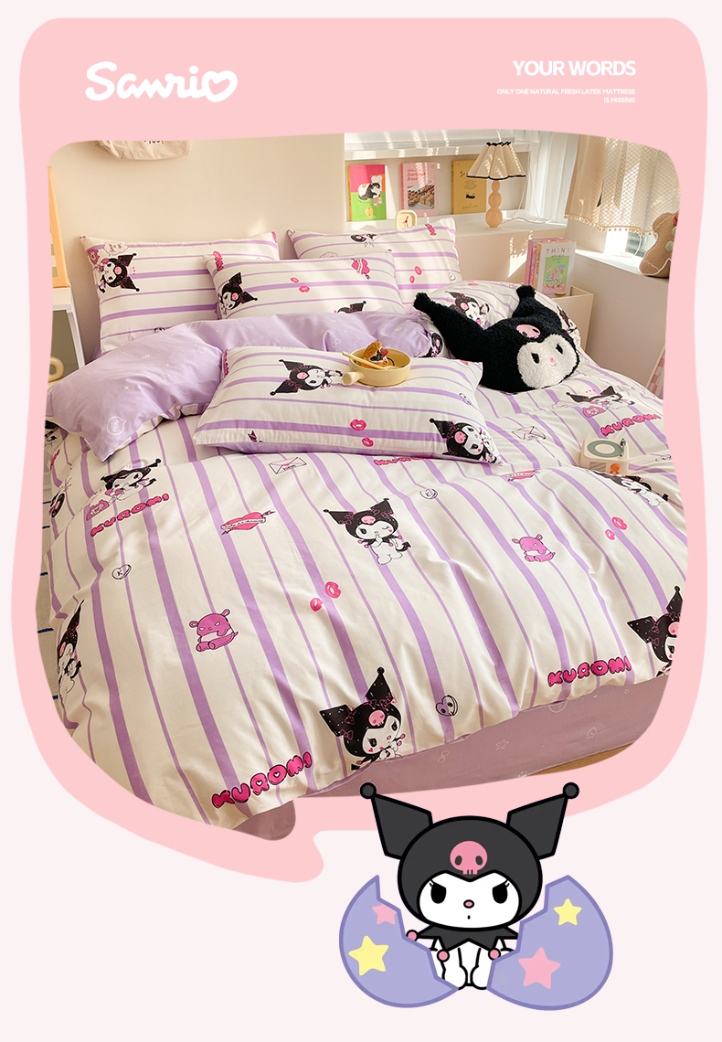 雅居纺家纺 2024新款全棉印花13070三丽鸥正版授权四件套 库洛米-紫