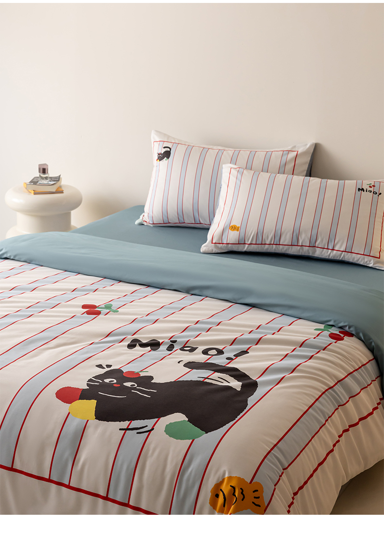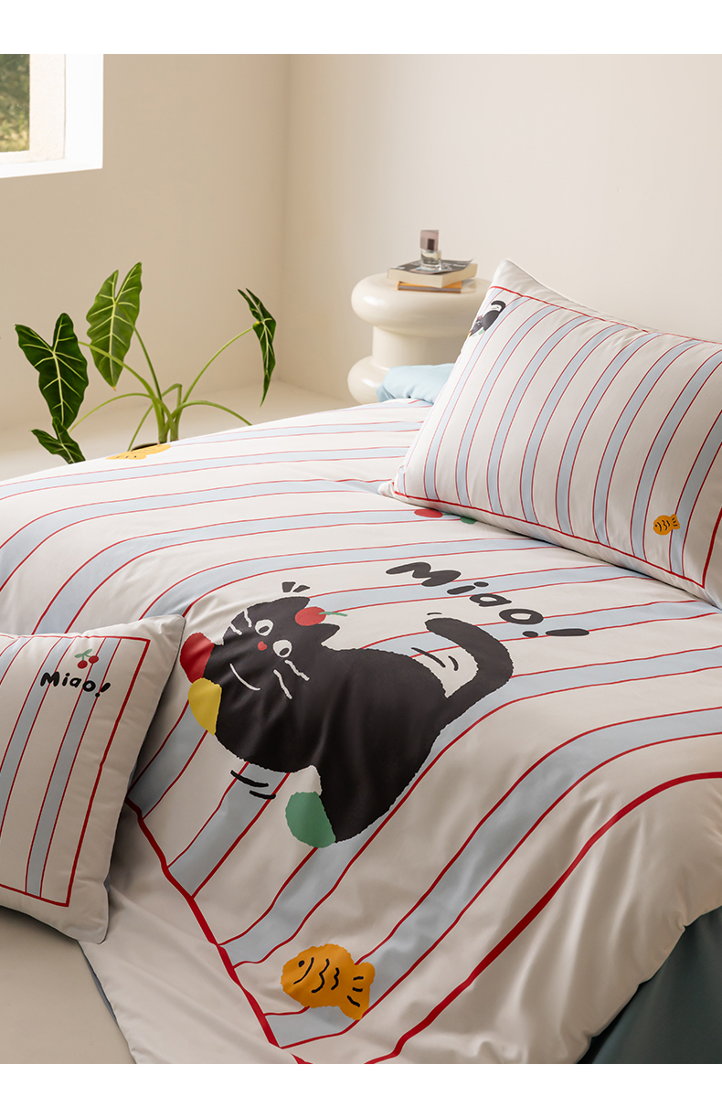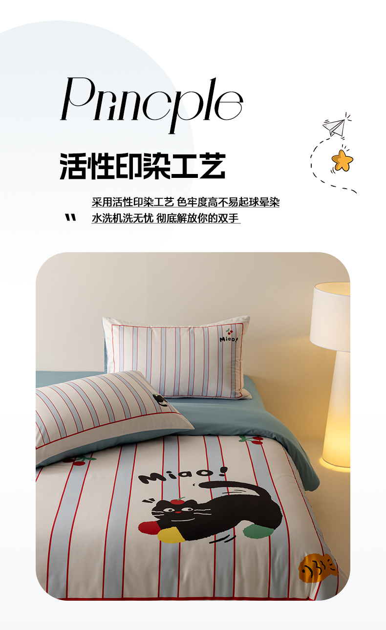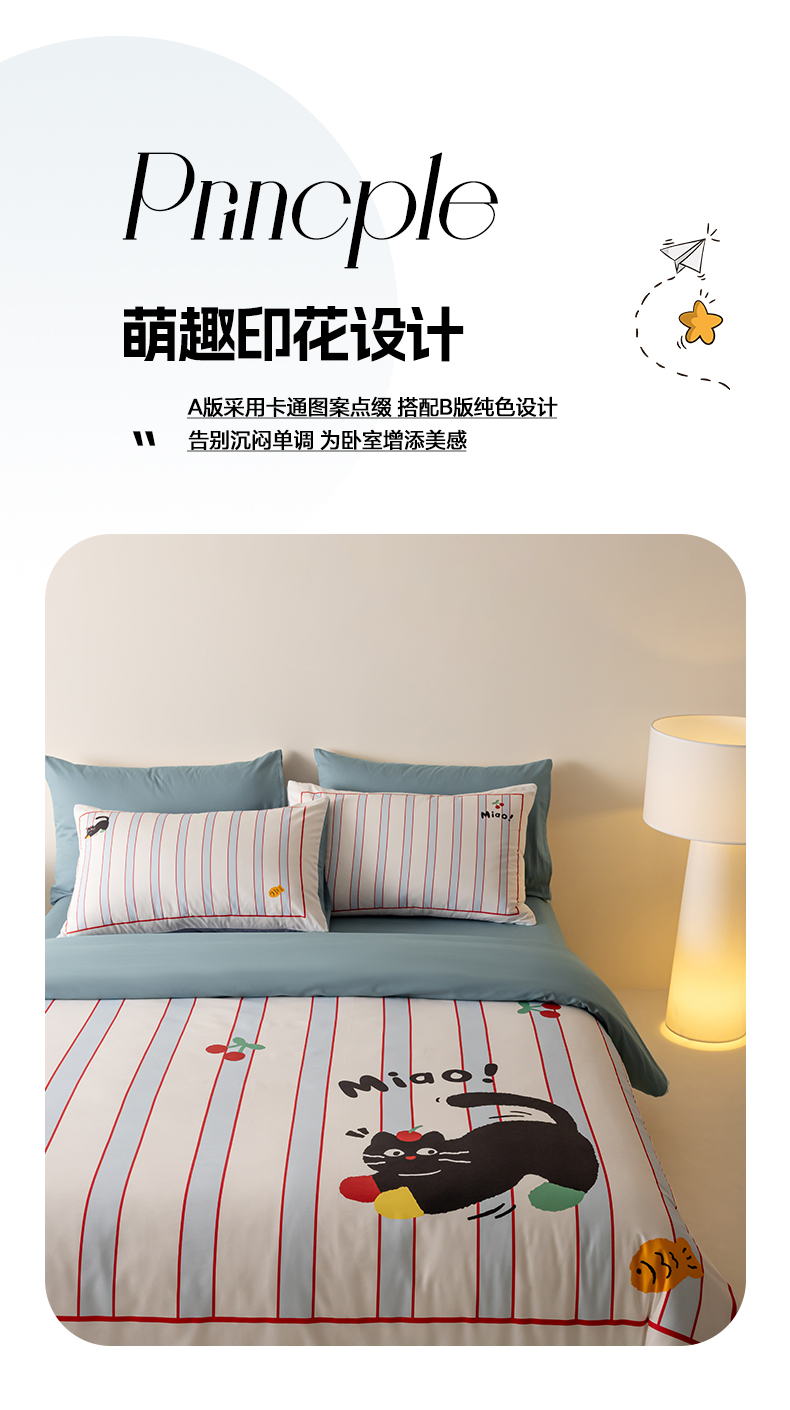 雅居纺家纺 2024新款全棉印花13372大版四件套 喵星人