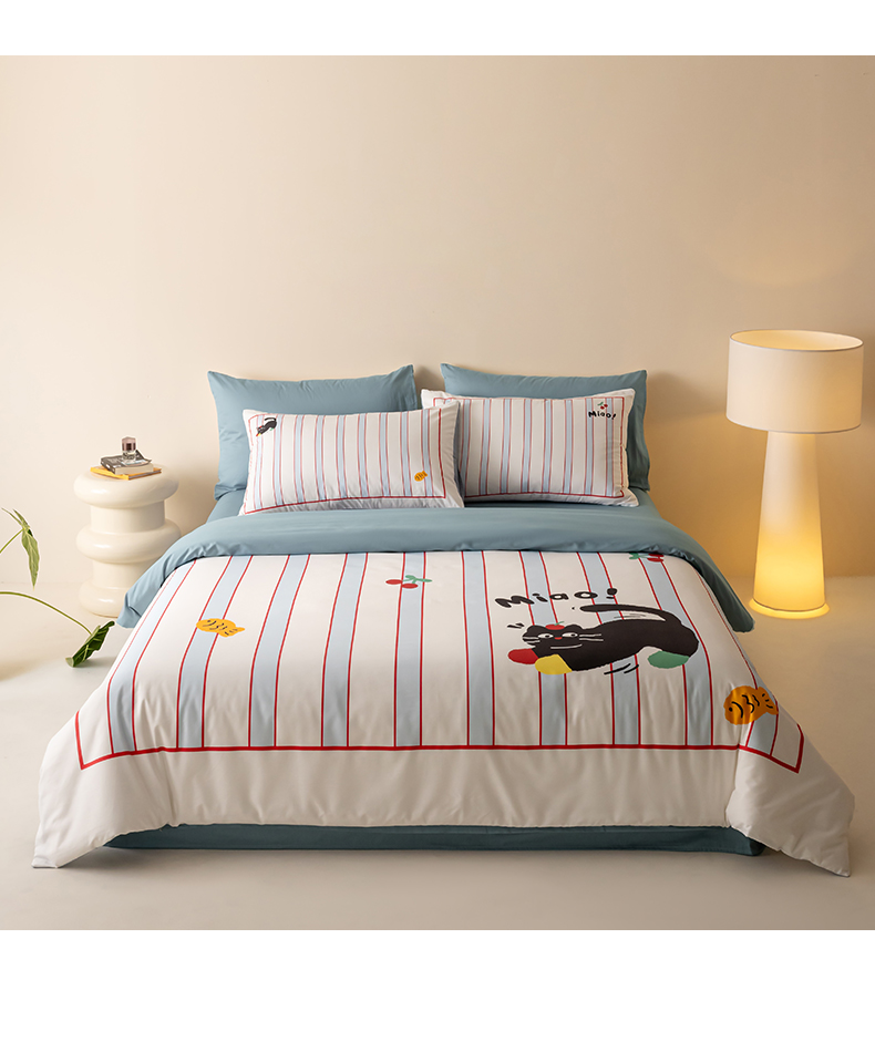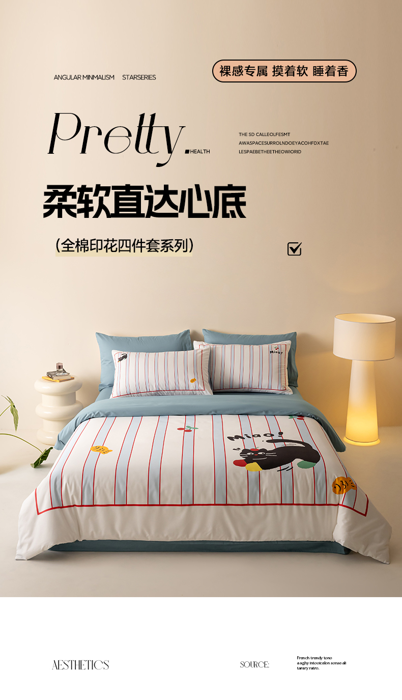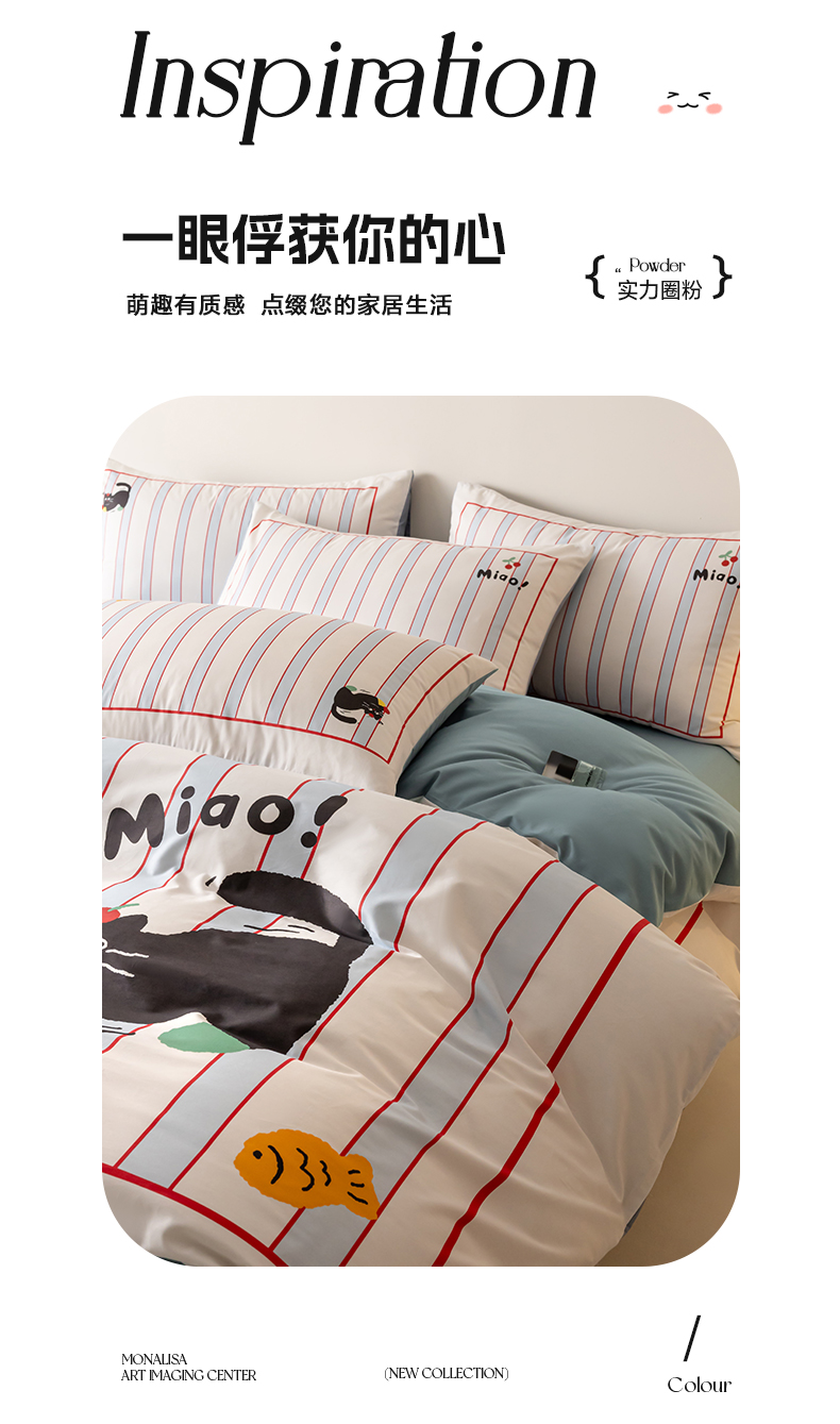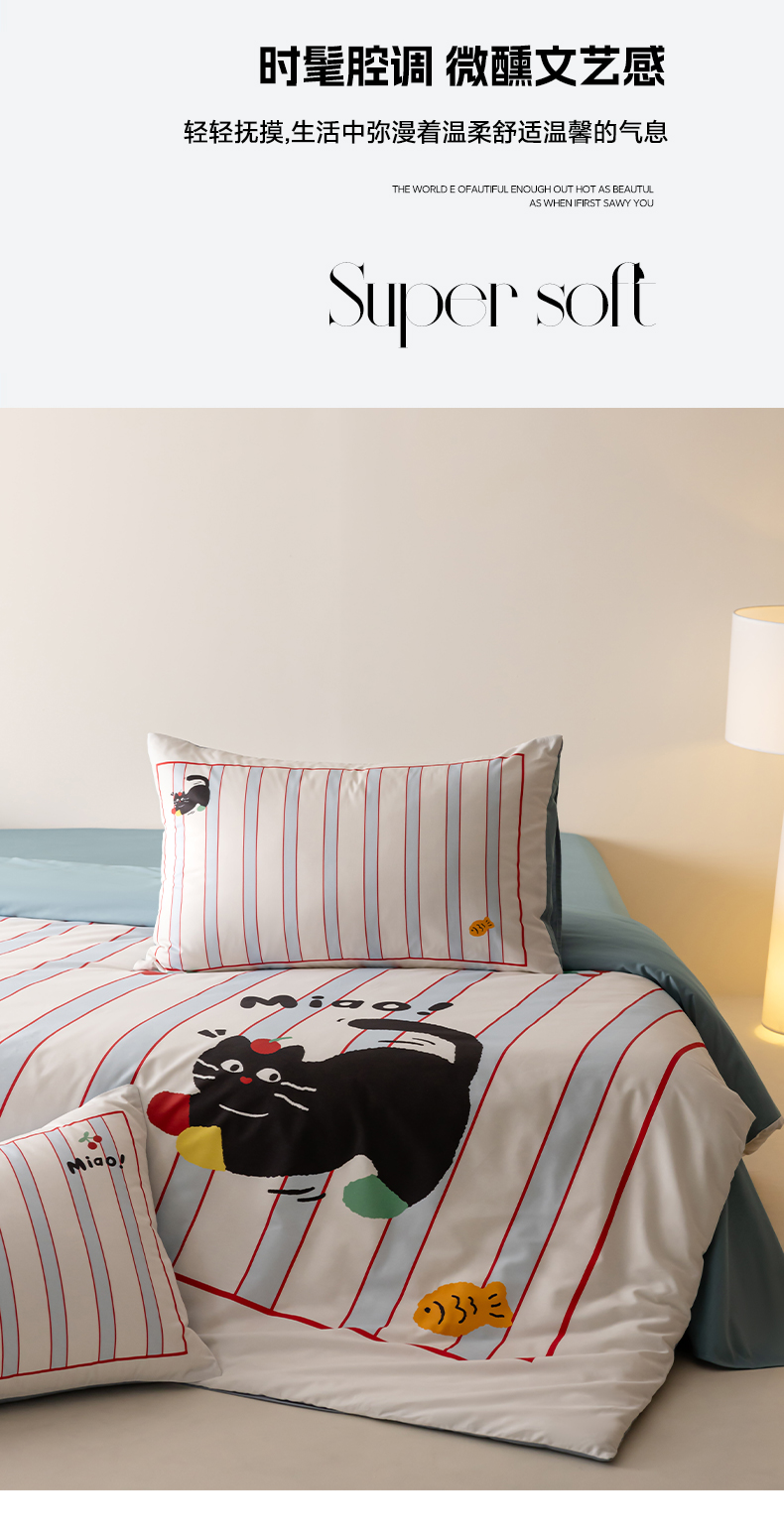 雅居纺家纺 2024新款全棉印花13372大版四件套 喵星人