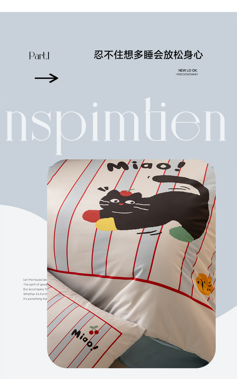 商品名称:雅居纺家纺 2024新款全棉印花13372大版四件套 喵星人