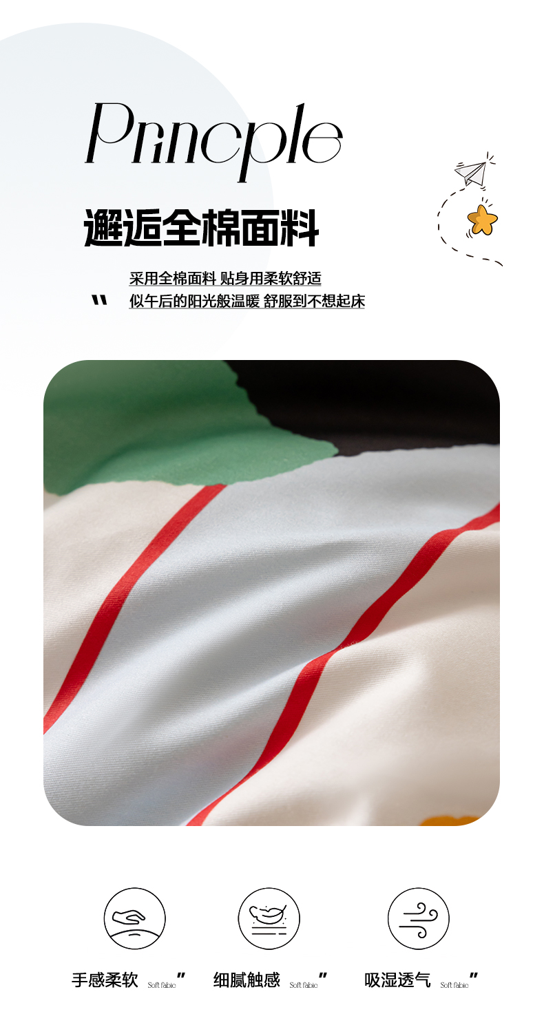 (总)雅居纺家纺 2022新款13070全棉印花四件套,波纹,多彩,简笔画,莓关系,奶油绿豹纹,倾心,数字