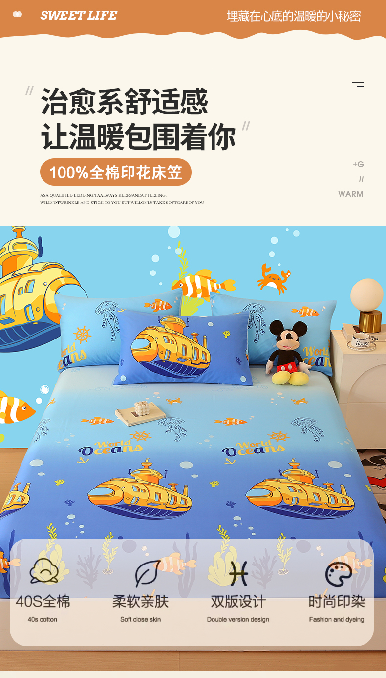金鑫汇家纺 2024新款全棉印花单床笠 海底探秘
