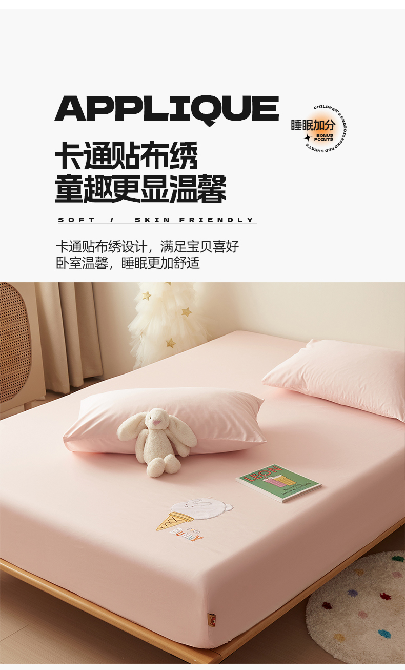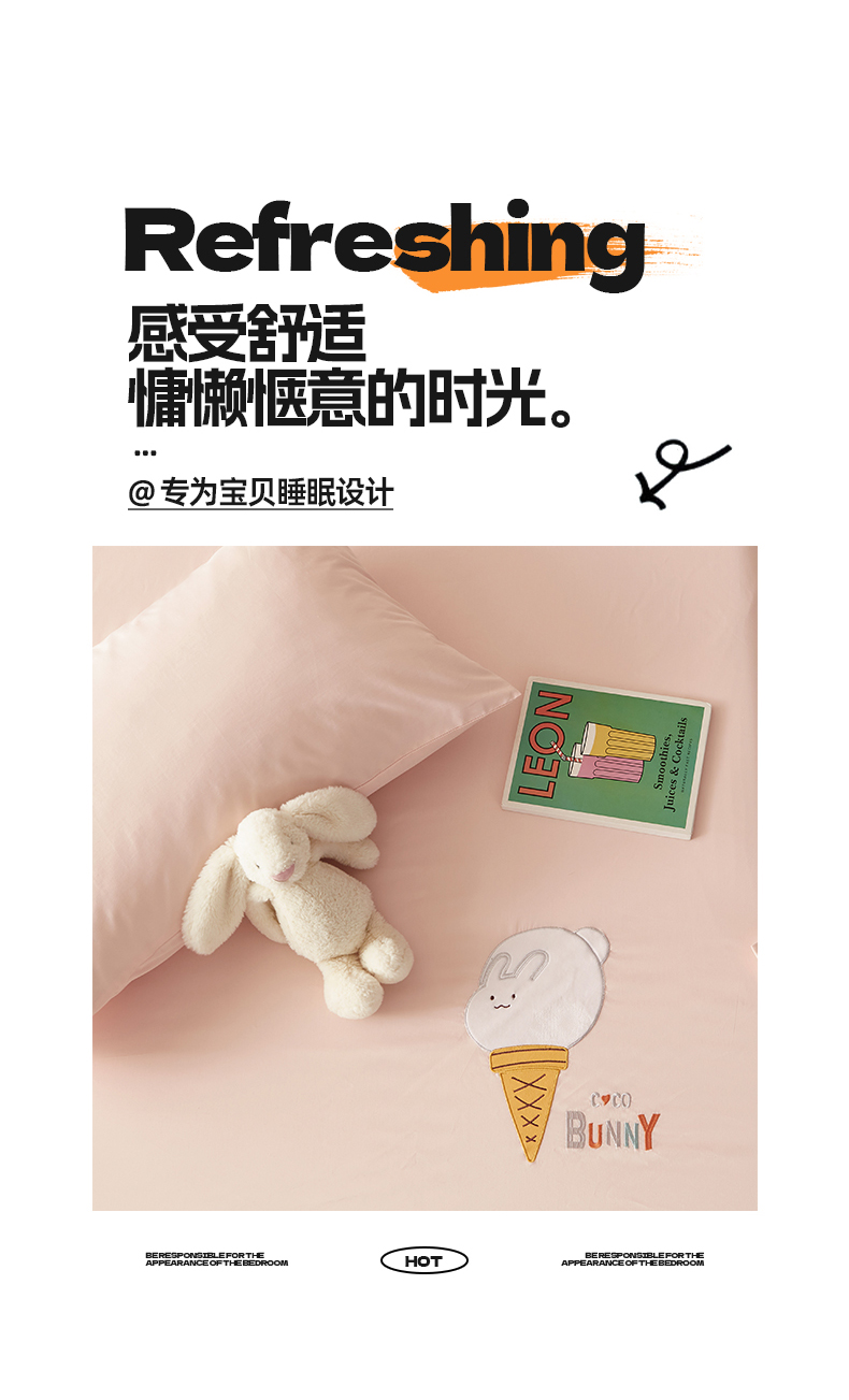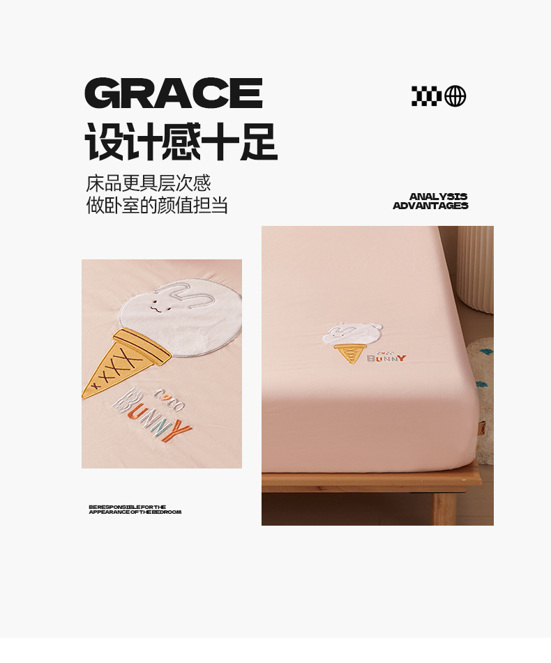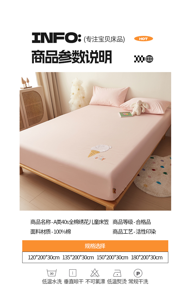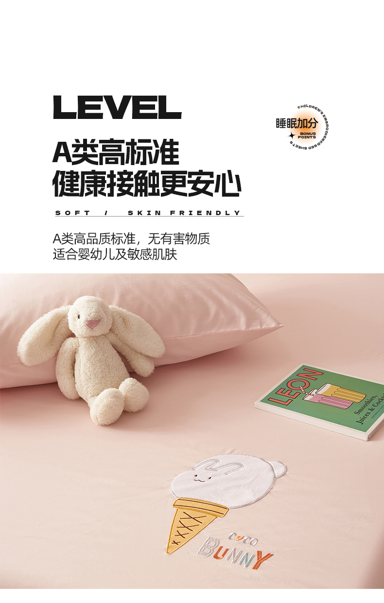 商品名称:荷马之梦 2024新款优趣系列—A类40s全棉绣花儿童床笠 冰激凌兔