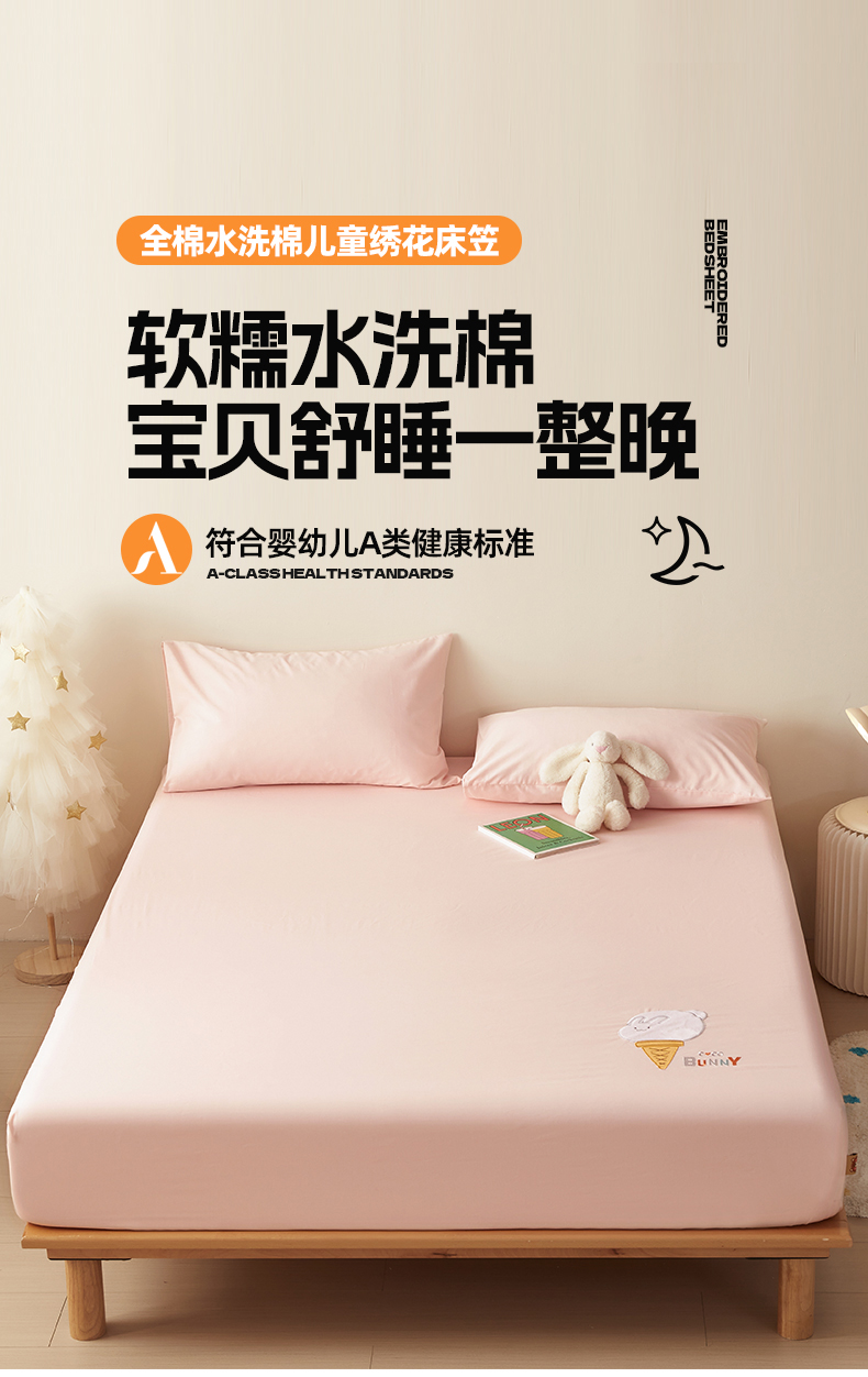 (总)荷马之梦 2025新款A类纯棉水洗棉大豆纤维夹棉绗缝儿童床笠-淳真系列,淳真-蓝小车,淳真-兔小花,淳真-小骨头,淳真-小苹果,淳真-星星龙