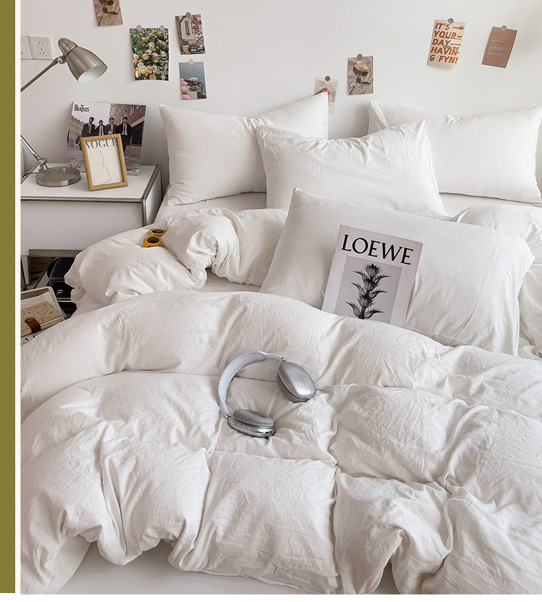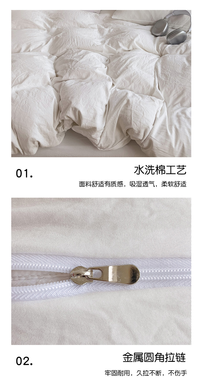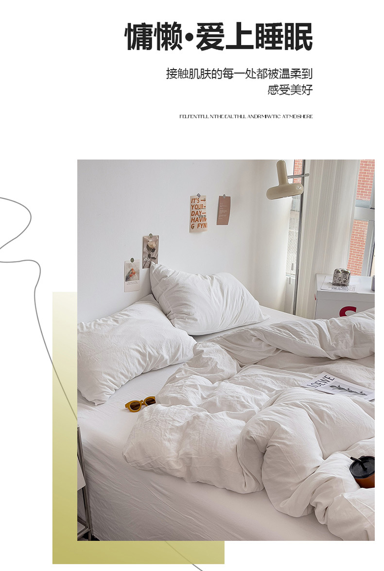商品名称:韩巢家纺 2024新款日式ins风超柔褶皱亲肤水洗棉被套单件-纯色系列(提供卖家秀) 水洗棉奶白