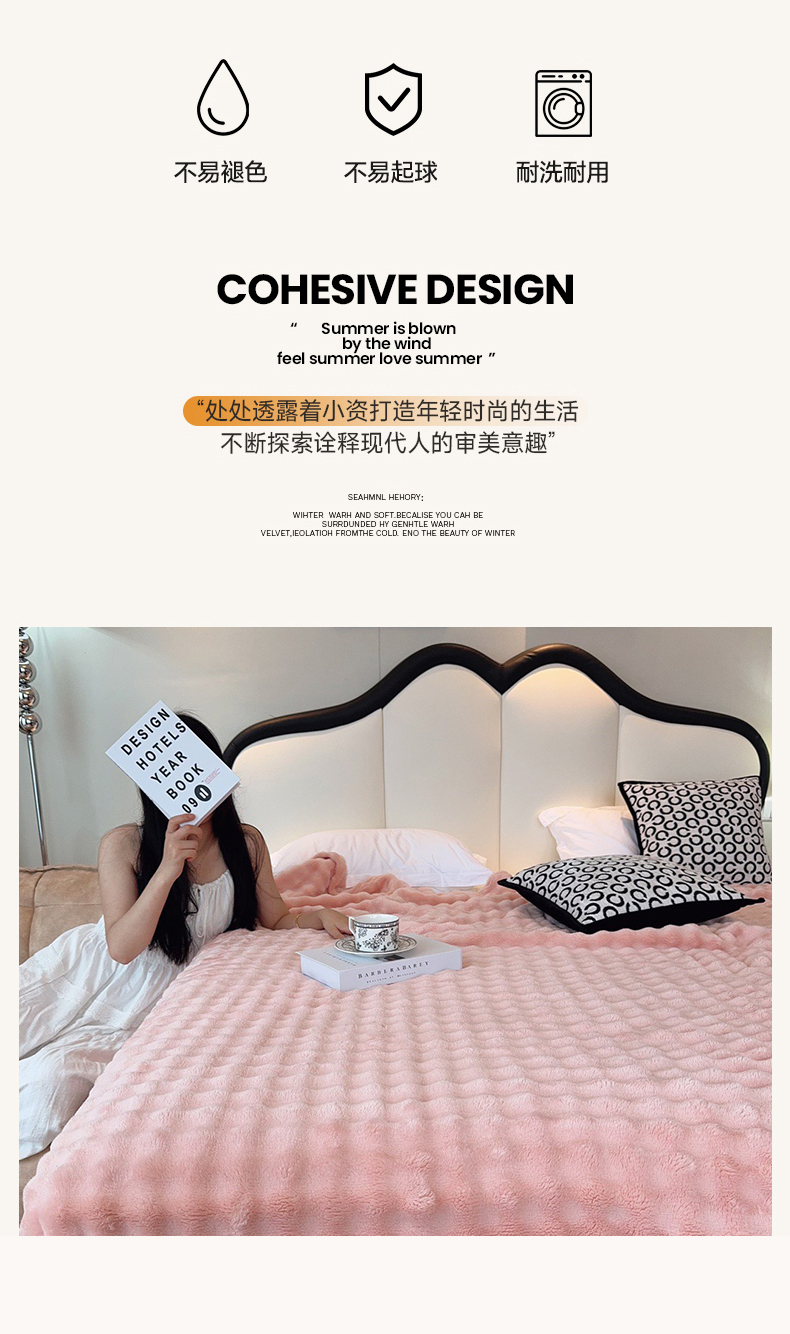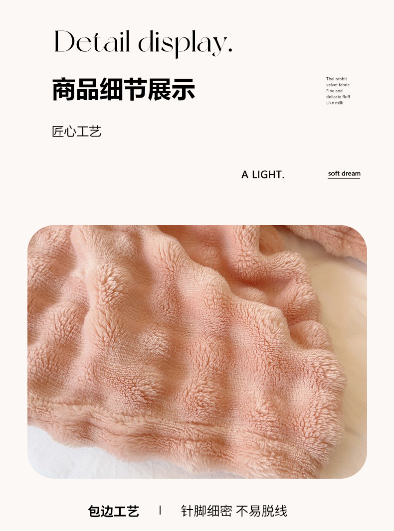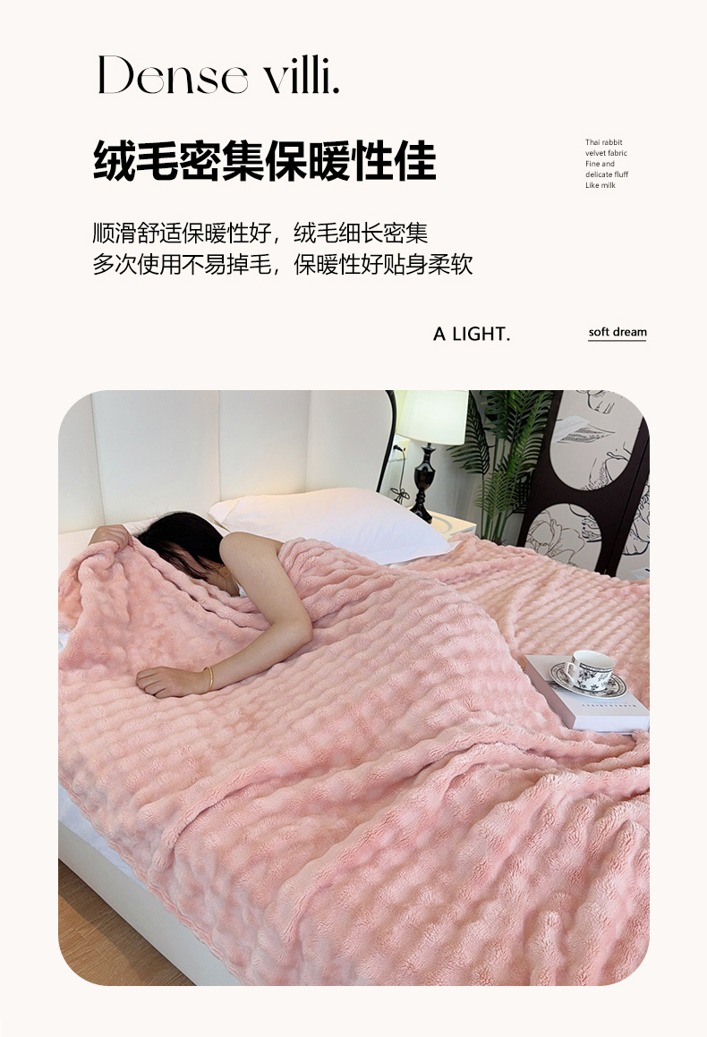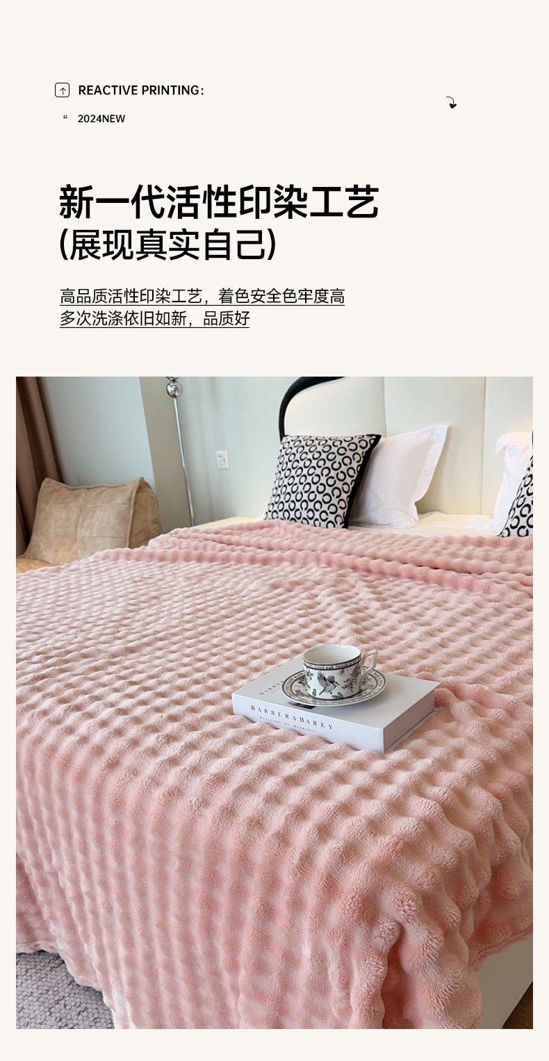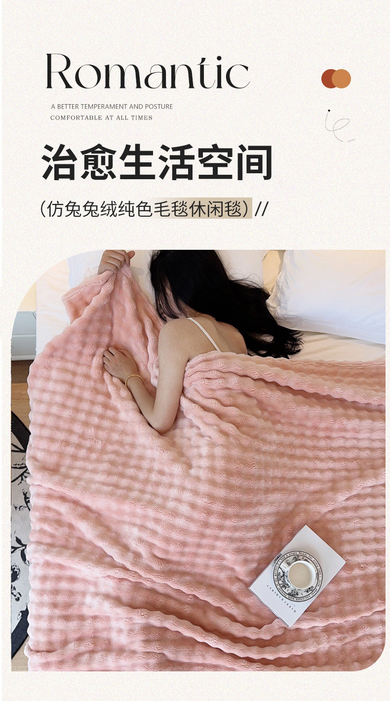 商品名称:兜米家居 2024新款纯色仿兔毛泡泡毛毯牛奶绒毛毯午睡毯 胭脂粉