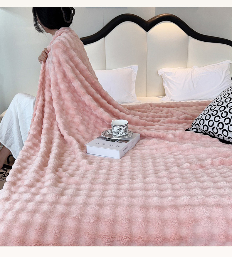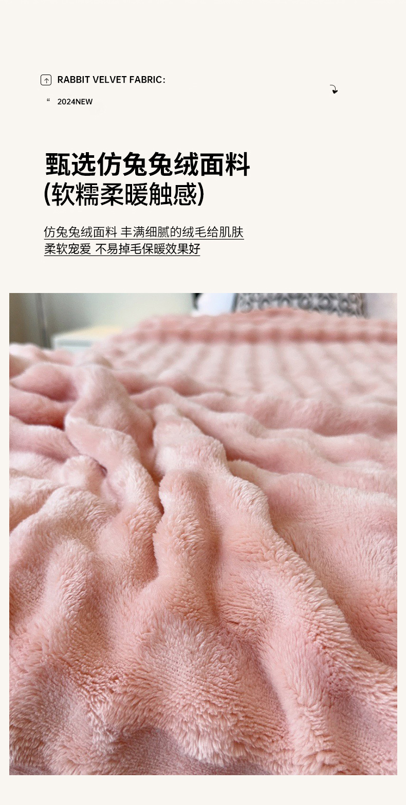 兜米家居 2024新款纯色仿兔毛泡泡毛毯牛奶绒毛毯午睡毯 胭脂粉