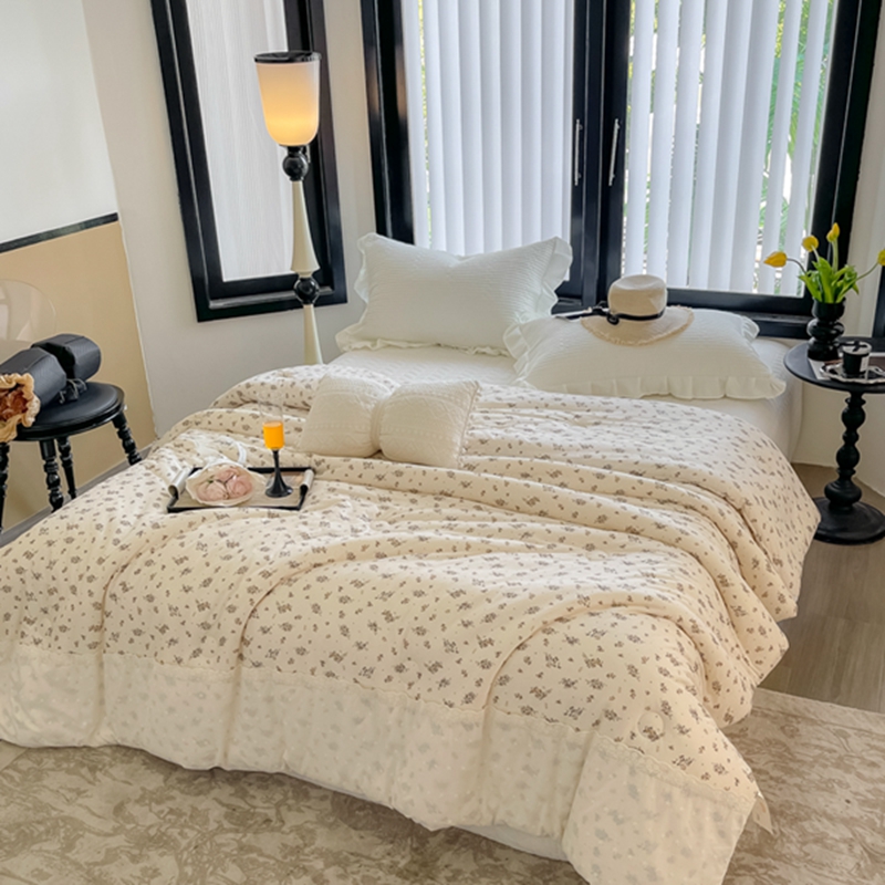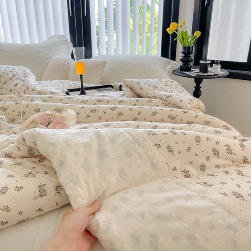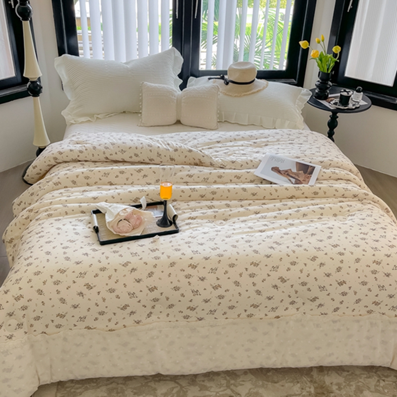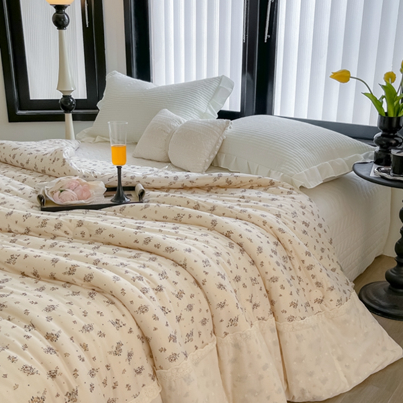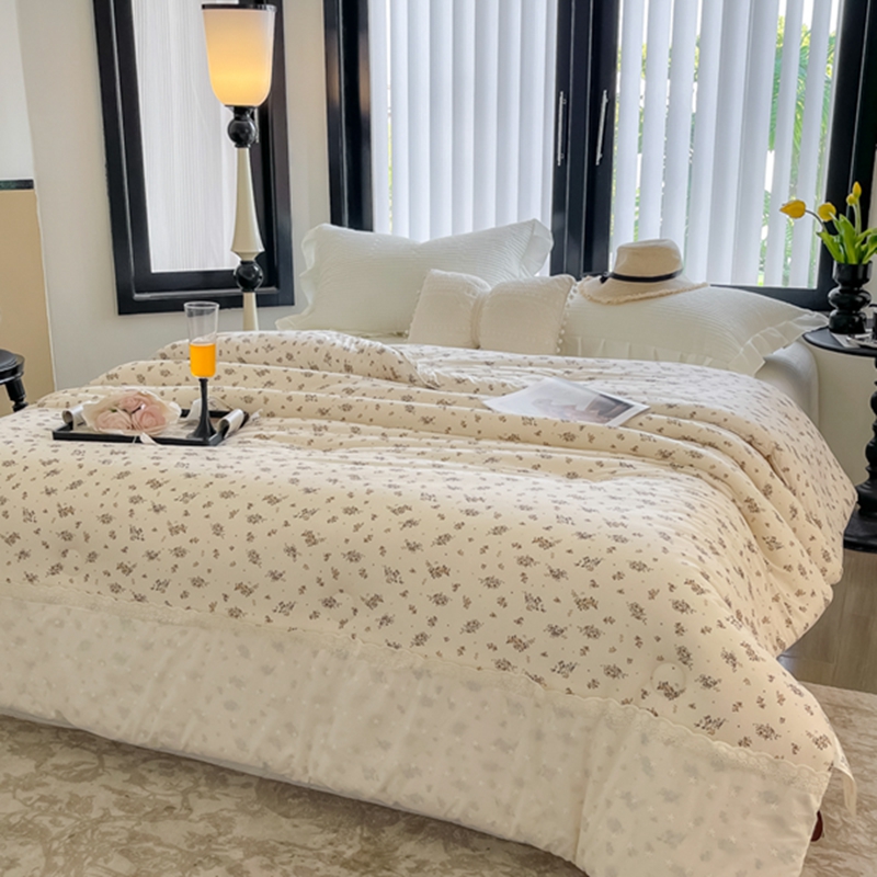 莱豫家纺 2024新款法式复古针织花边夏被春秋被 春日情