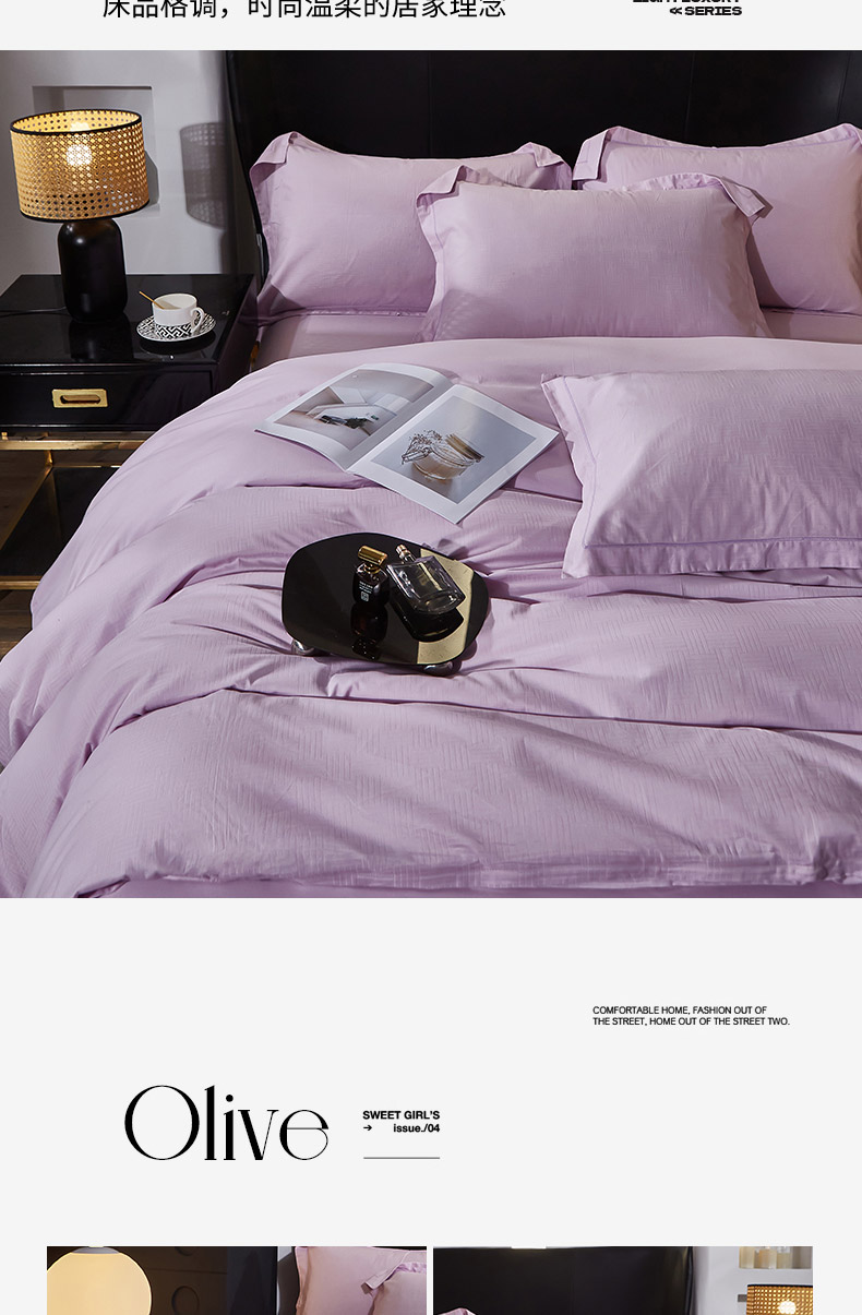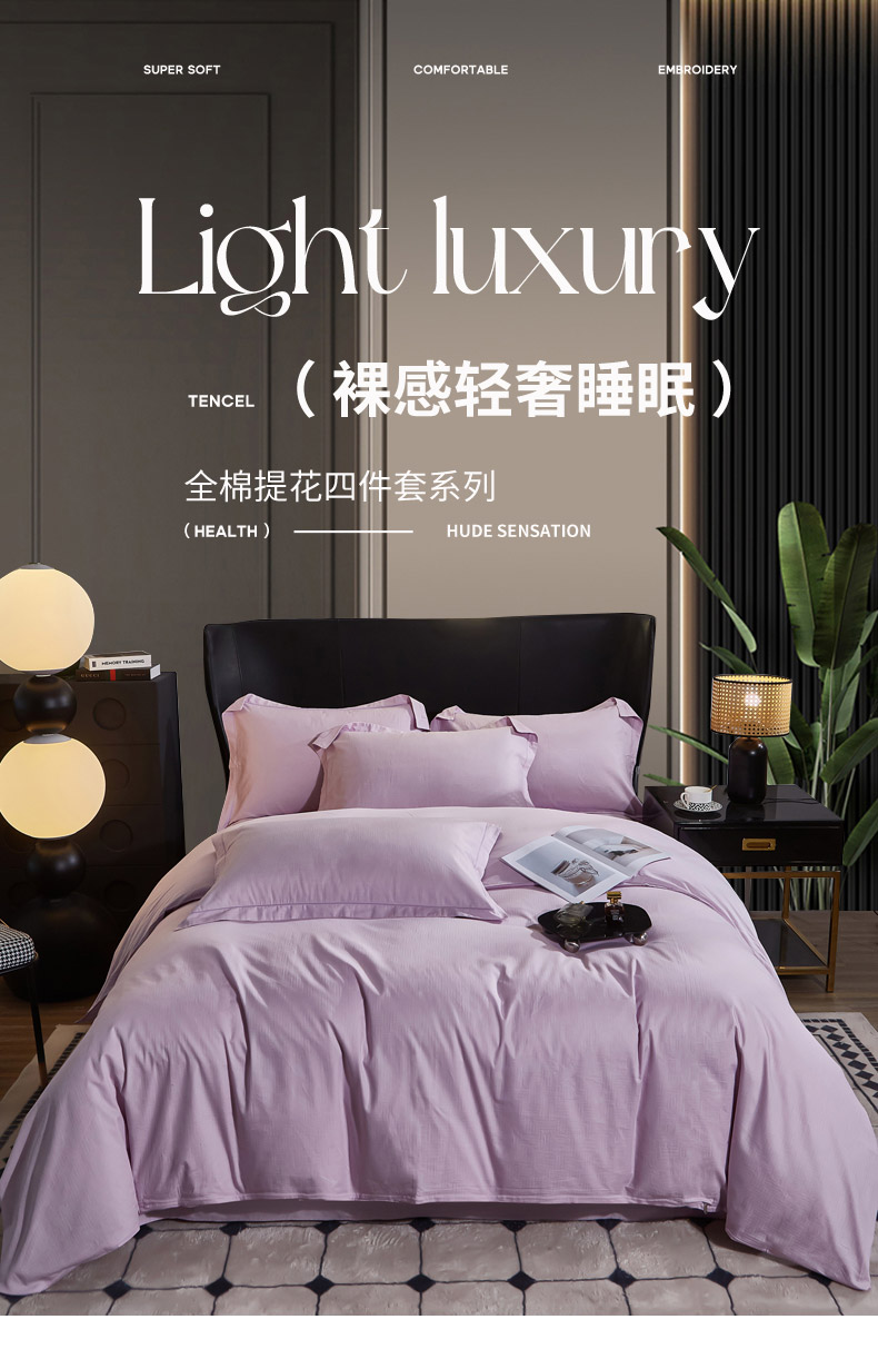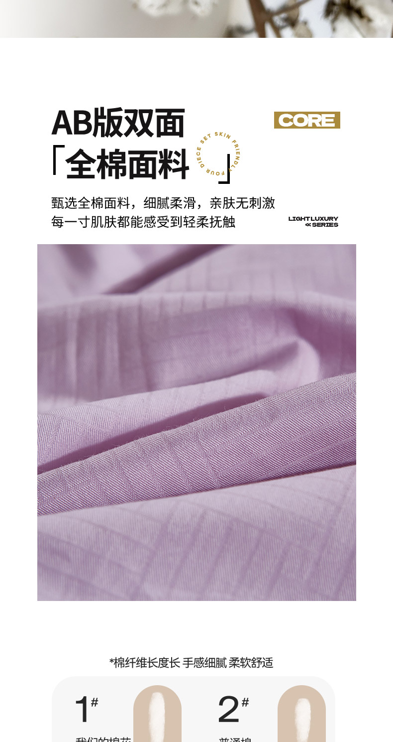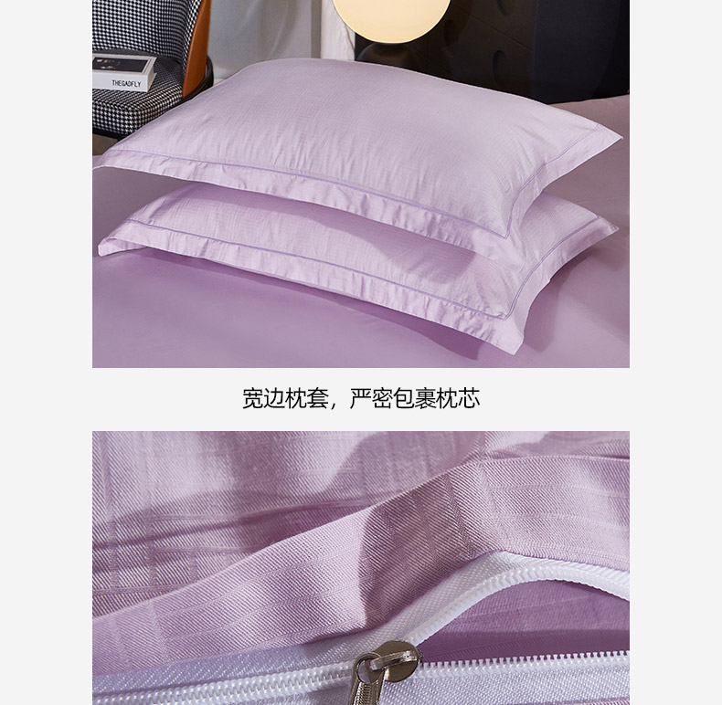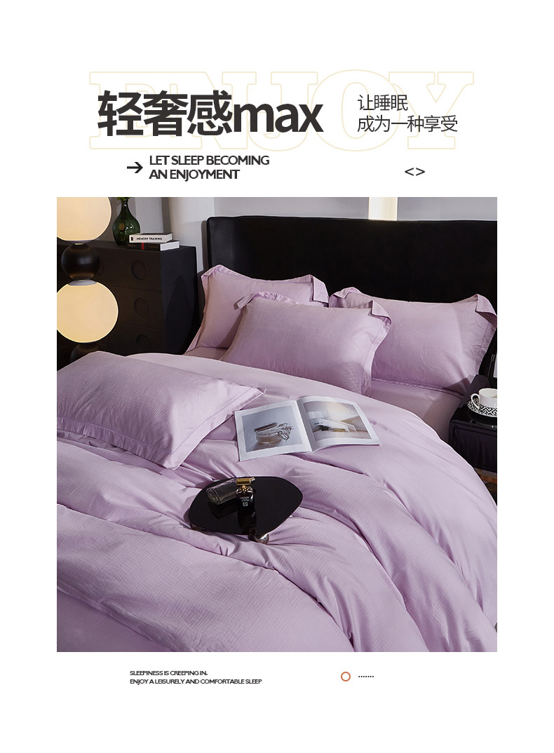 商品名称:雲归梦 2024新款全棉提花活性高支密轻奢四件套 细条纹-优雅紫