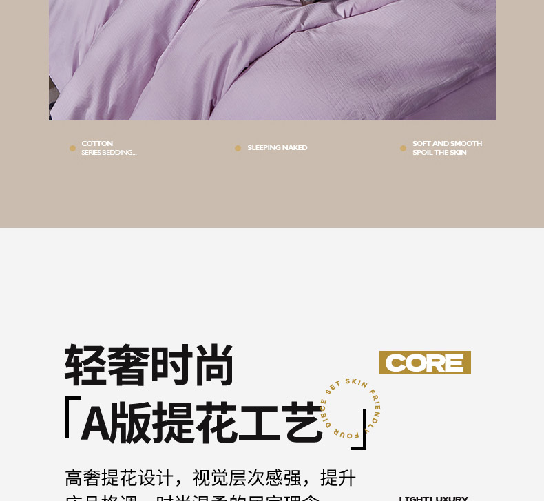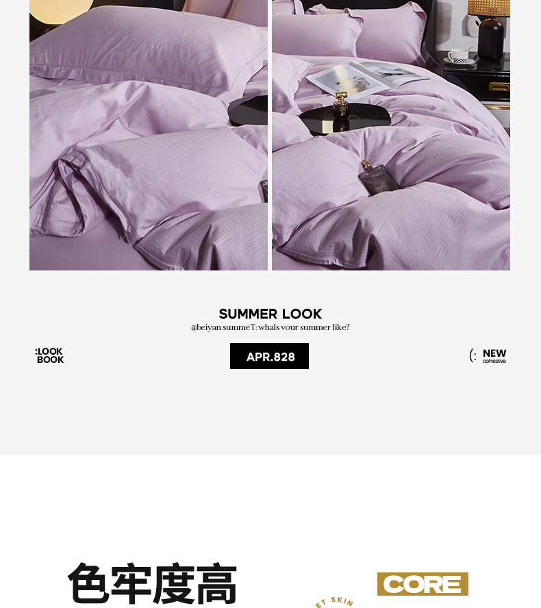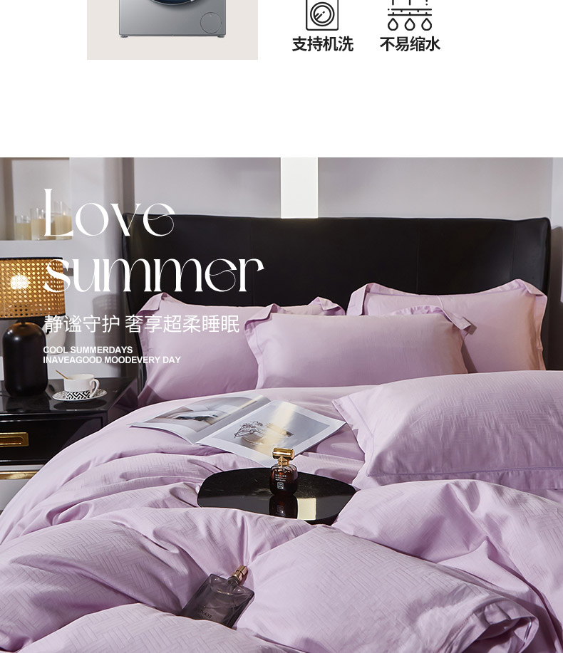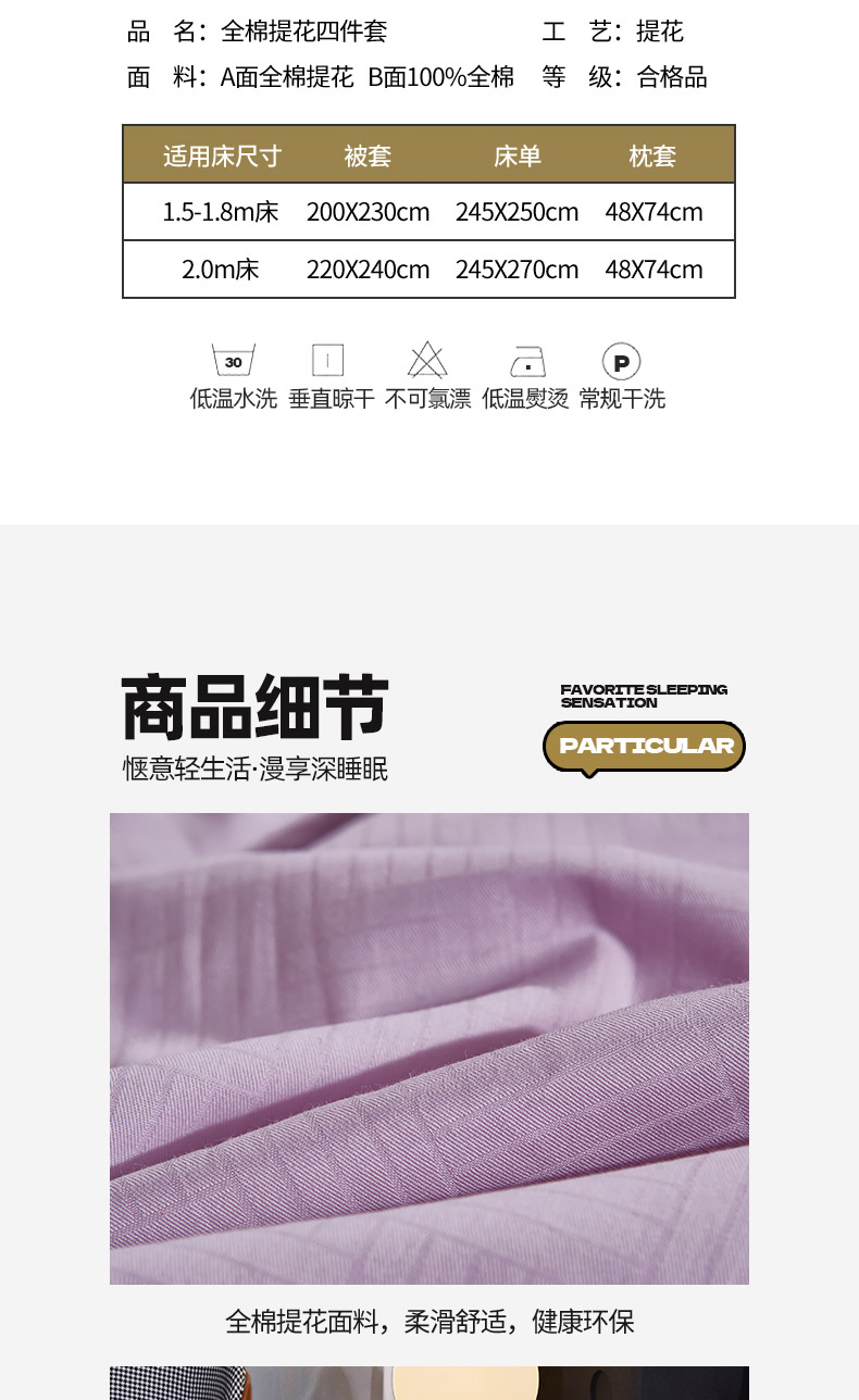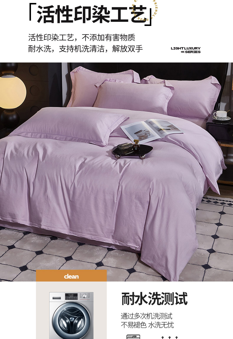 商品名称:雲归梦 2024新款全棉提花活性高支密轻奢四件套 细条纹-优雅紫
