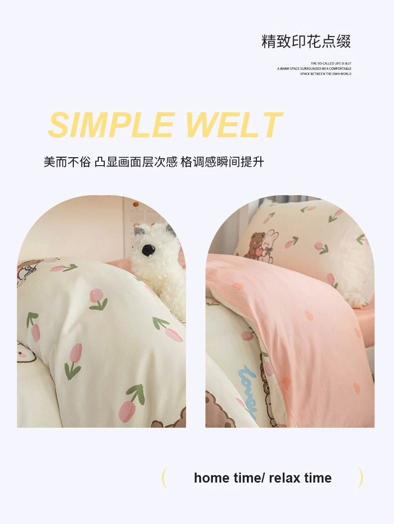 倾慕家纺 2024新款清新风纯棉印花学生套件系列 百事可爱