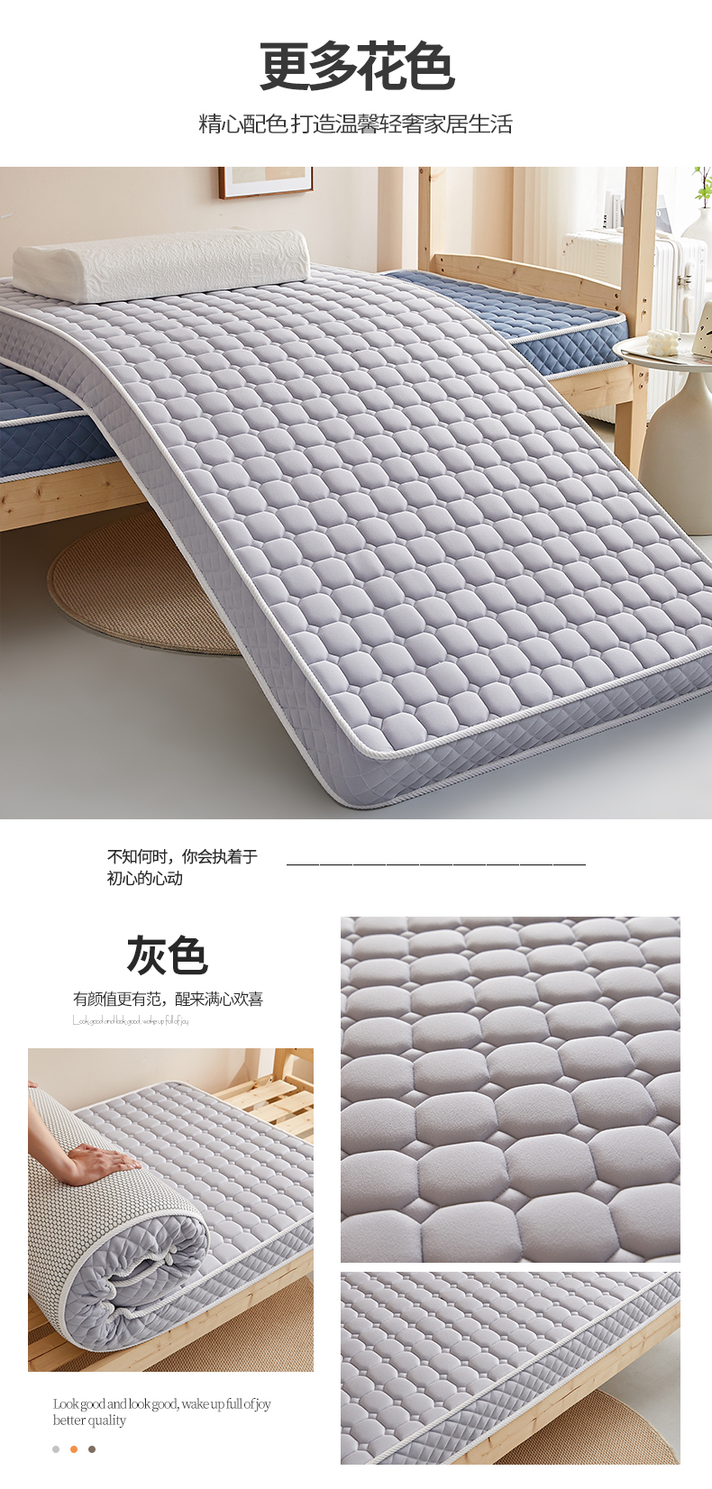 • 91家纺网 家纺一手货源 找家纺 卡派 2024新款单人床乳胶记忆棉立体加厚加高床垫5-10cm(面包格系列) 灰色