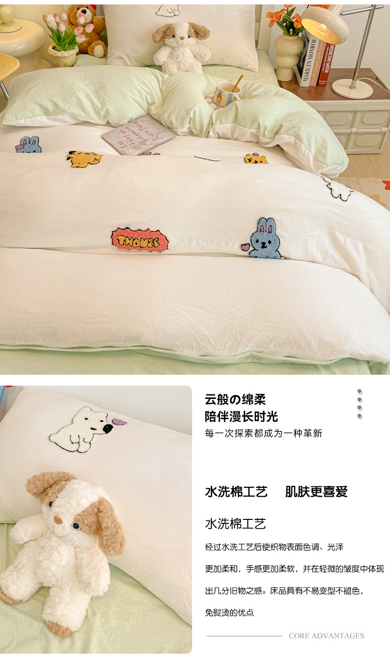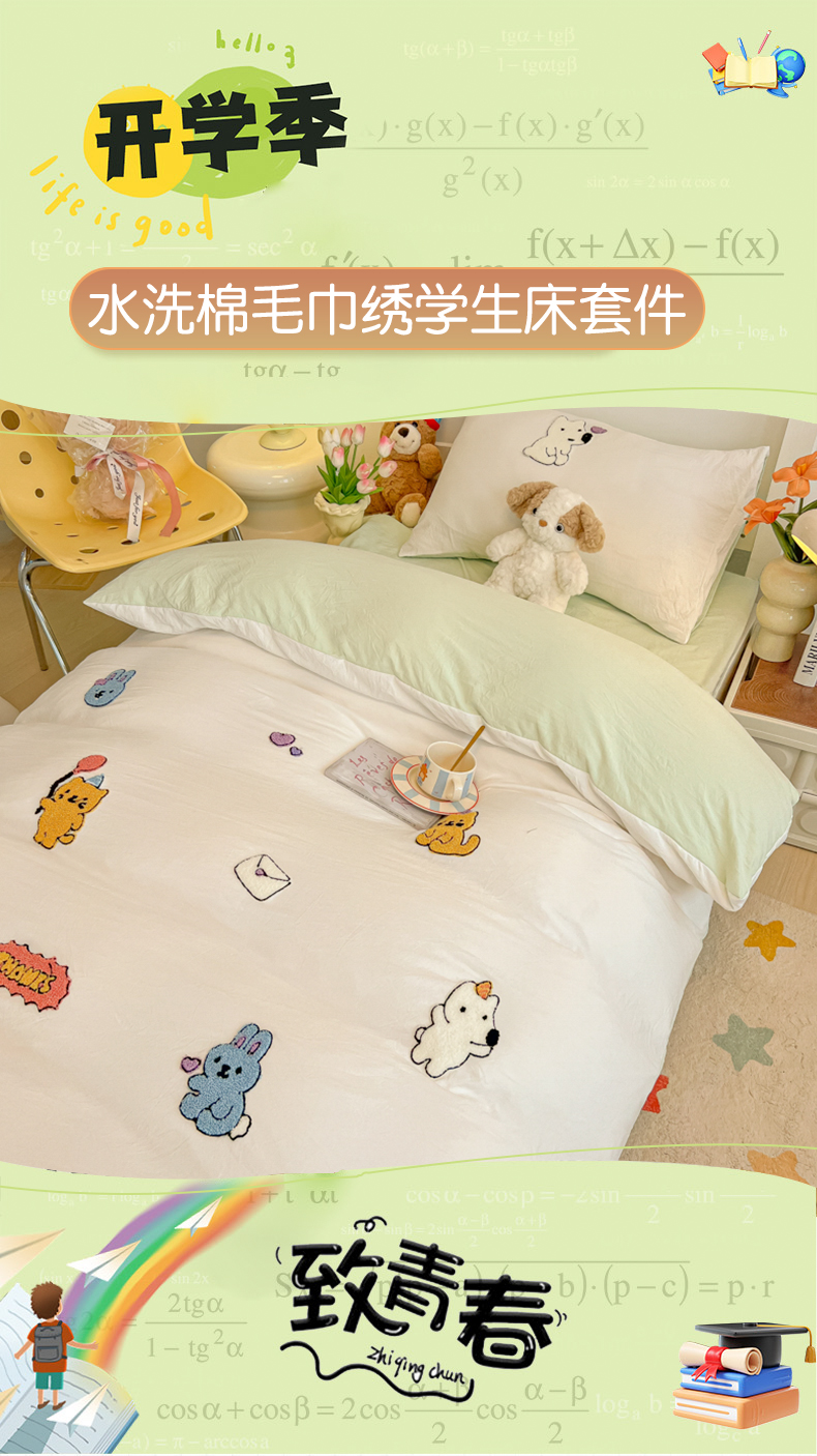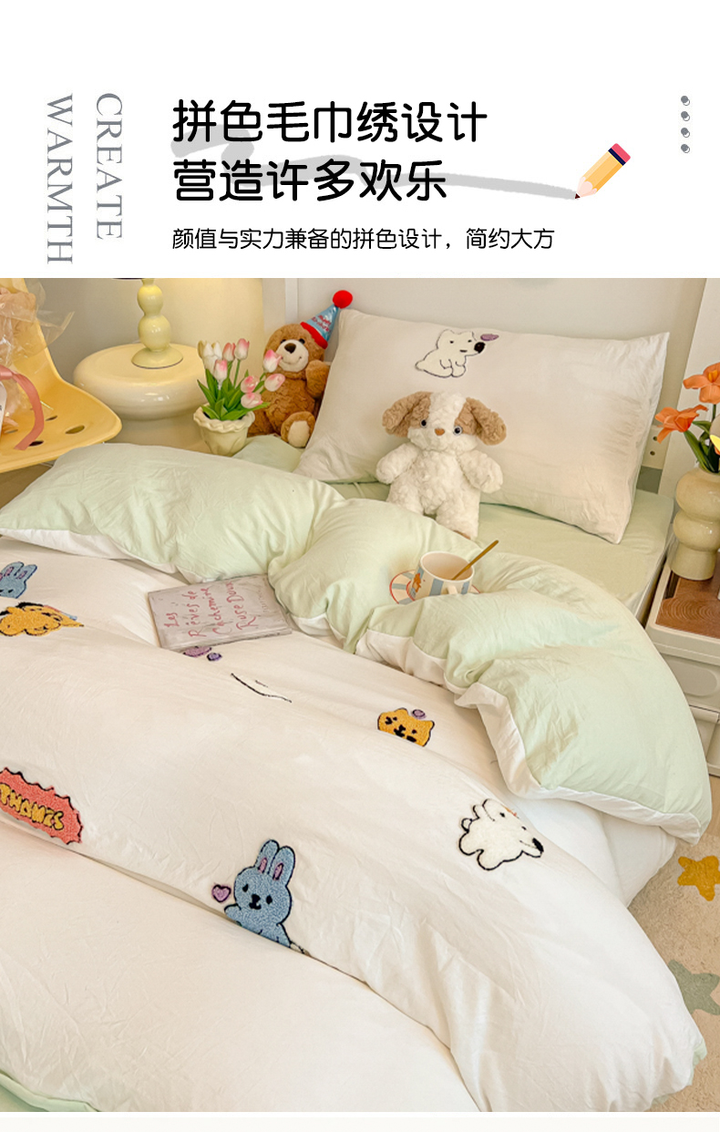• 91家纺网 家纺一手货源 找家纺 韩巢家纺 2024新款学生宿舍寝室上下铺超柔水洗棉单件被套-动物乐园 动物乐园白绿