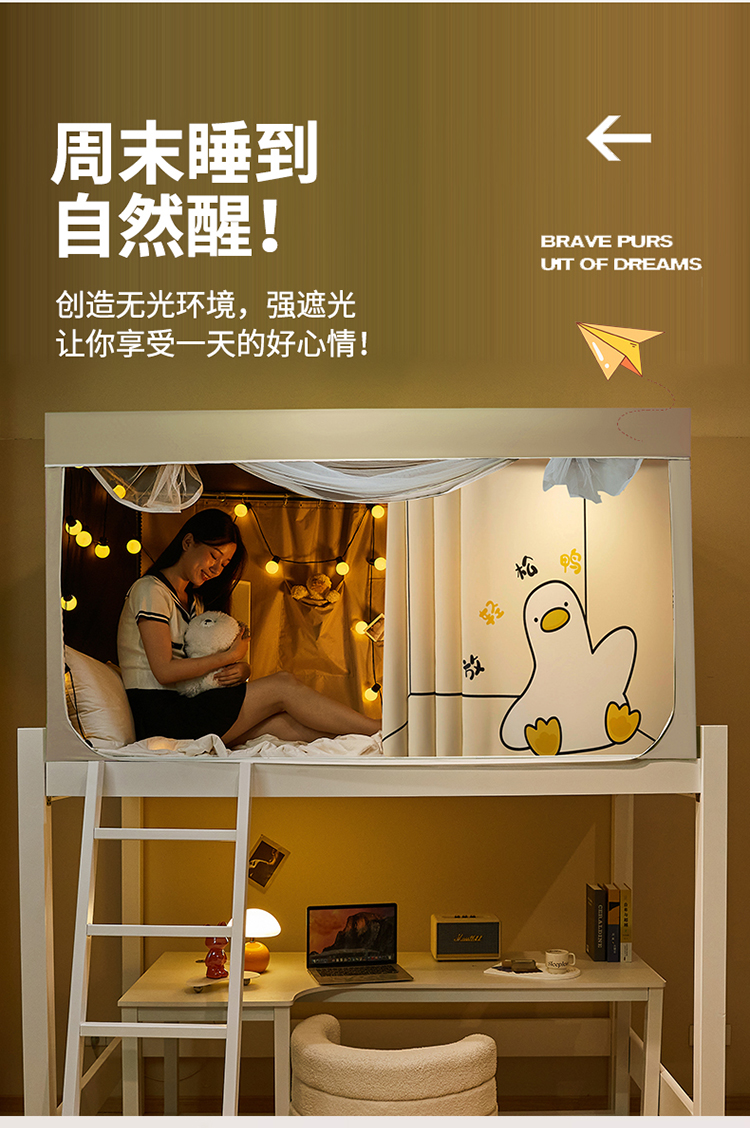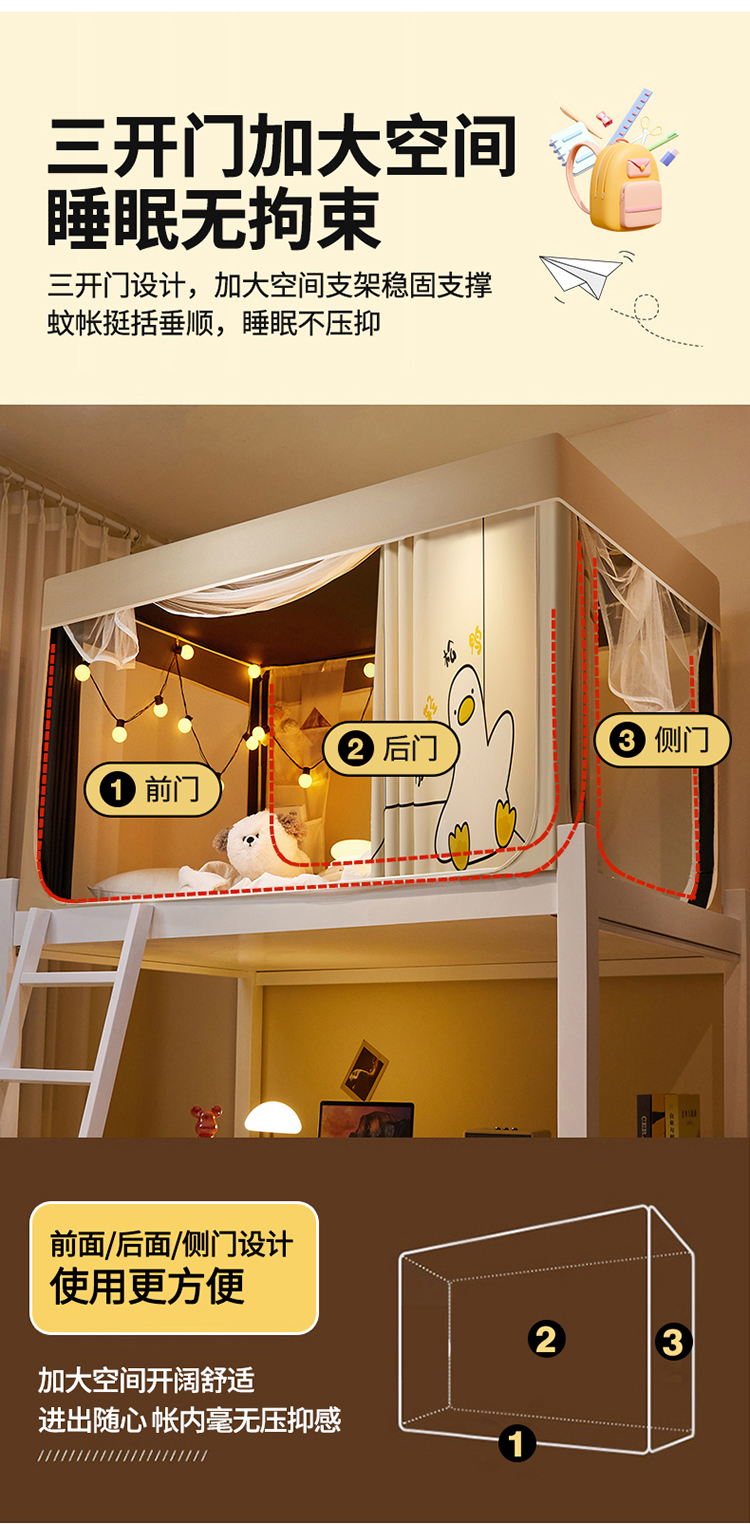 商品名称:2024新款学生宿舍强遮光坐床蚊帐 米色-放轻松鸭