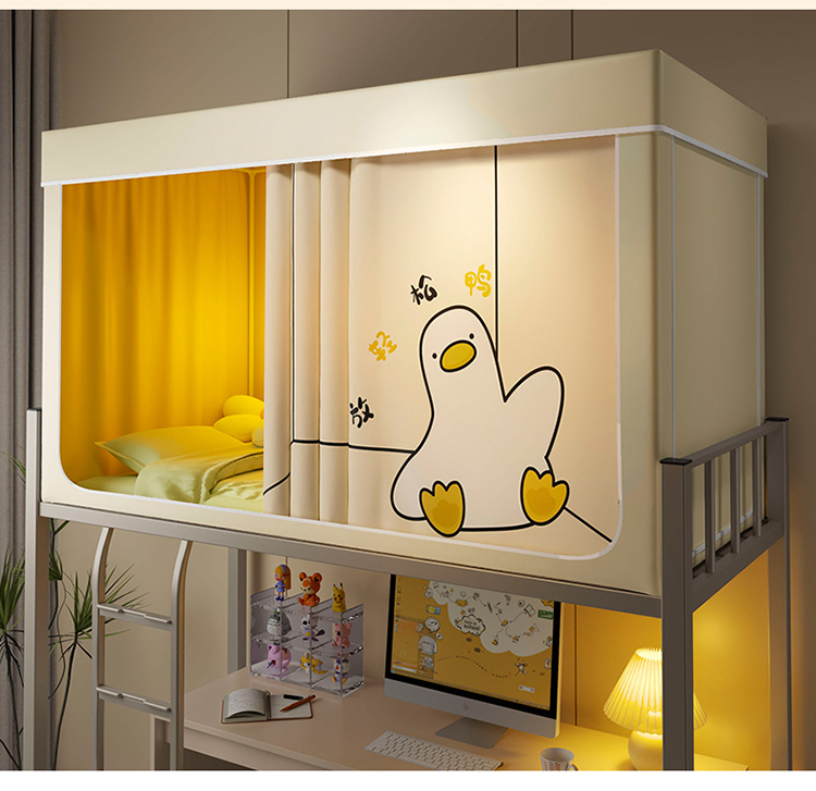 2024新款学生宿舍强遮光坐床蚊帐 米色-放轻松鸭