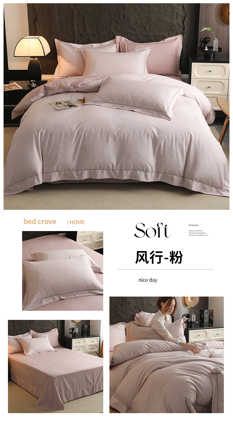 商品名称:巧玲珑 2025新款60支高端美式新疆棉四件套 风行-粉