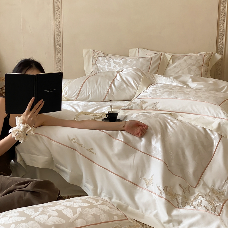 商品名称:(总)初拾 2024新款100s澳棉高精密提花四件套-蝶舞星光