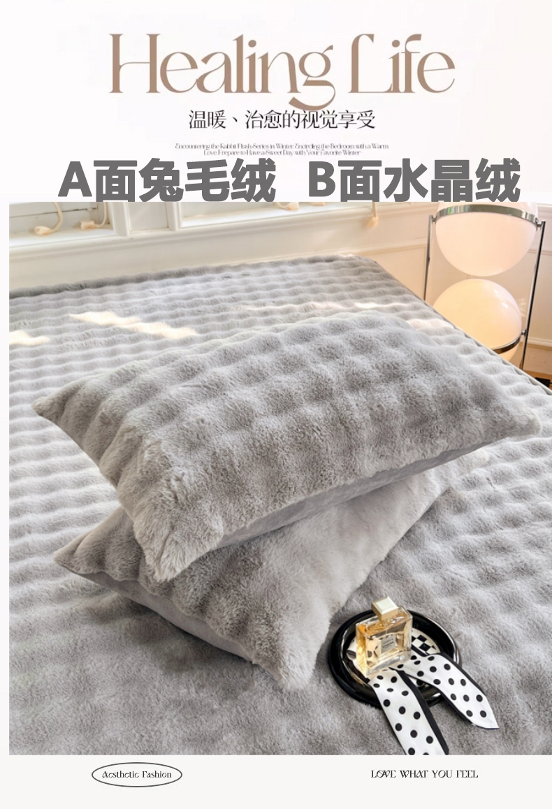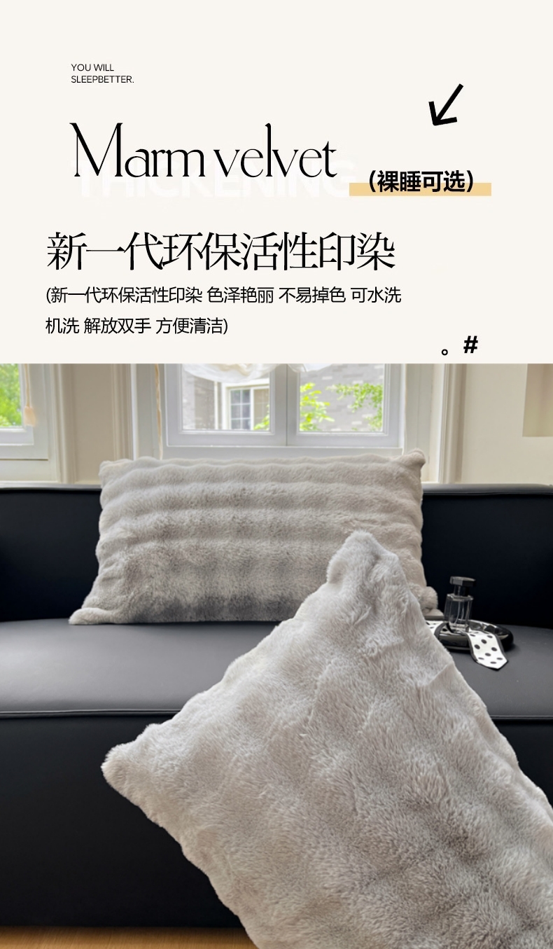 商品名称:梦舒羽 2025新款兔毛绒单人枕套牛奶绒枕芯套雪花绒宿舍枕头套 烟雨灰
